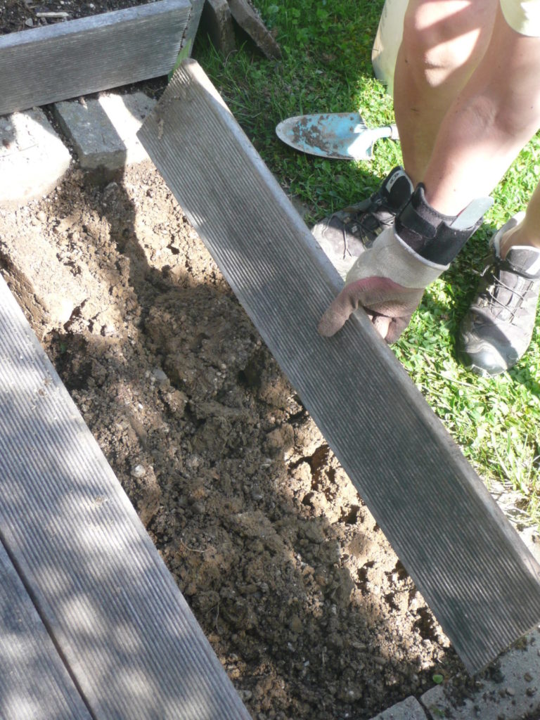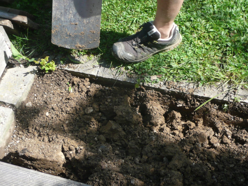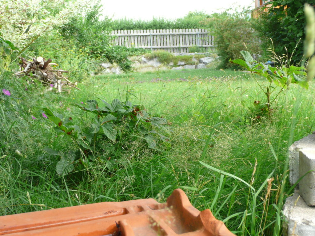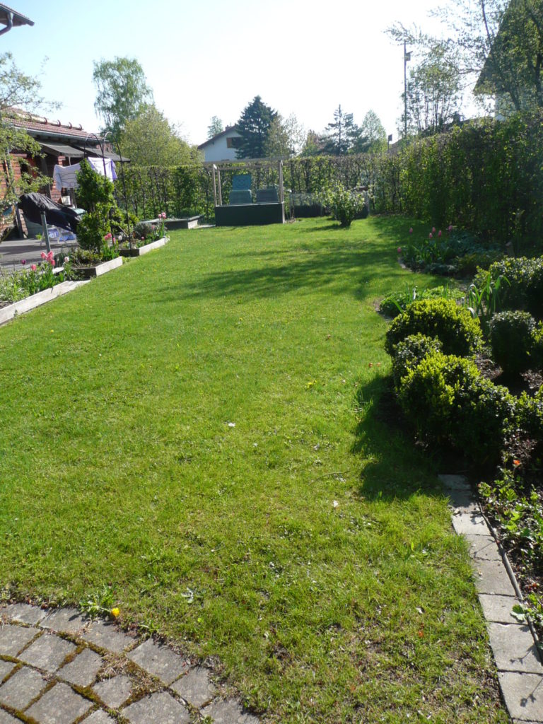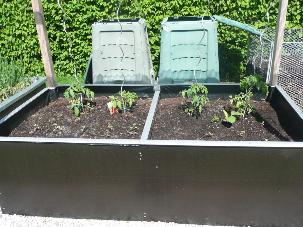 Der Garten unseres Einfamilienhauses ist in zwei Bereiche geteilt. Er diente lange Zeit als Spiel- und Fußballplatz für unsere Kinder. Seit letztem Jahr sind wir nun dabei, die beiden Flächen umzugestalten, da die Kinder sie nicht mehr zum Spielen benötigen. Aus dem Sandkasten ist ein Gemüsebeet geworden, ein zweites Hochbeet und ein Tomaten-Hochbeet sind hinzugekommen. Wir kompostieren den Bioabfall komplett selbst in zwei Thermokompostern und 2 Gitterkompostern. Der reife Kompost wird direkt auf die Beete verteilt. Auf Pestizide verzichten wir und gedüngt wird mit selbstangesetzter Brennesseljauche.
