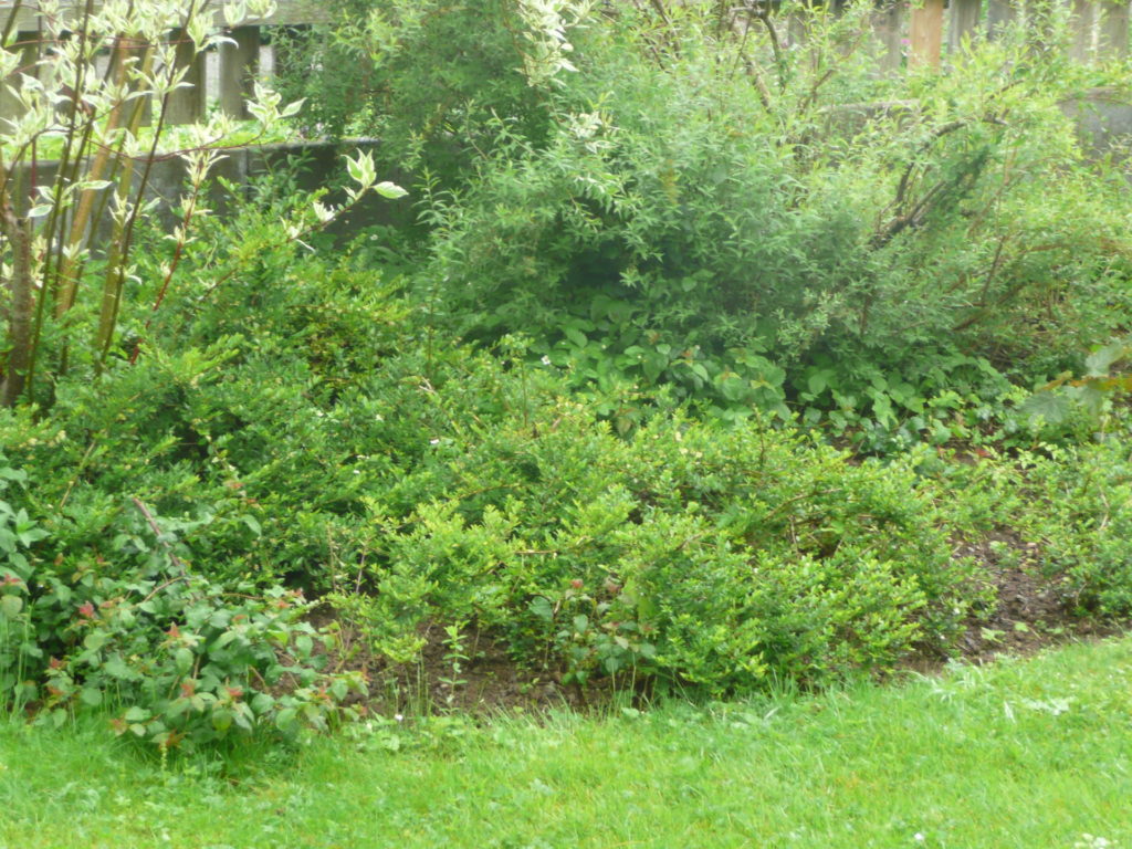 Gehölze: Johannisbeeren, Stachelbeeren, Zierapfel, Kastanie, Weigelie, Kolkwiezie, Flieder, Schneeballen, BauSpieernjasmin, Hainbuchenhecke, Liguster, Amelanchie, Himbeeren, Brombeeren, Hartriegel, Spirienstrauch, Weinrebe
