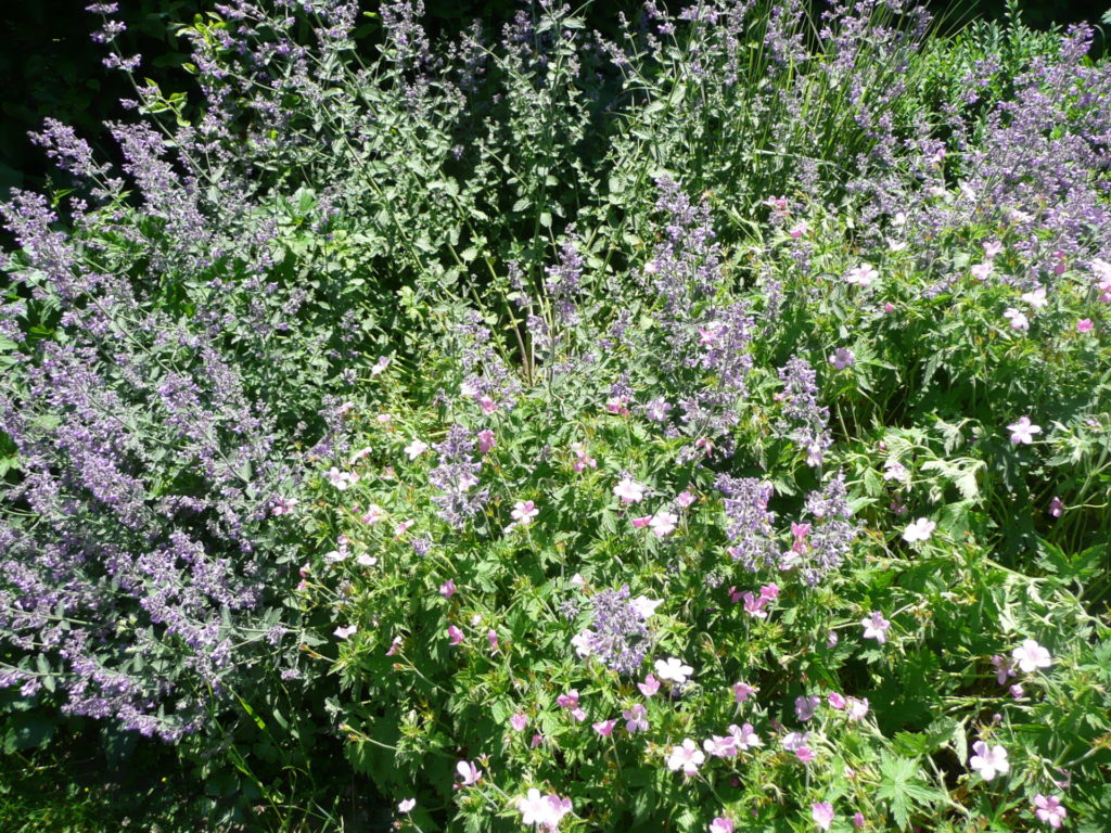 Stauden: Katzenminze, Storchschnabel, Sonnenhut, Sonnenbraut, Mädchenauge, Kugeldistel, Wolfsmilch, Flammenblume, Frauenmantel, Blaukissen, Polsterphlox, Roter Sonnenhut, Clematis, Brennessel, Blaudistel, Pfingstrosen,