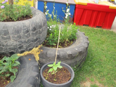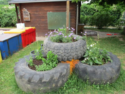 Die zukünftigen Vorschüler der Kita "Unter dem Regenbogen" in Stollberg (Erz) haben schon seit einiger Zeit ein Projekt zum Thema "Bienen, Hummel, Wespen, usw.". Da passt das Projekt "Pflanzwettebewerb" unter dem Motto "Wir tun was für Bienen" super dazu. Wir haben unsere Beete aus alten Traktorreifen angelegt, welche wir von der Familie Grimm in Stollberg bekommen haben. Die Beete sind mit bienenfreundlichen Pflanzen von den Kindern bestückt worden. Bei der Auswahl der Pflanzen wurde darauf geachtet dass diese in unterschiedlichen Zeiten blühen und somit den Bienen den ganzen Sommer über als Nahrungsquelle zur Verfügung stehen.