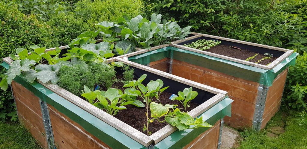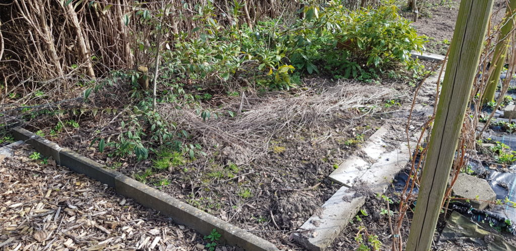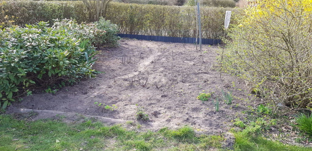 Eine Ligusterhecke um die Parzelle herum bietet Windschutz. Zusammen mit einem 12qm großen Teich wird ein insektenfreundliches Kleinklima erzeugt .