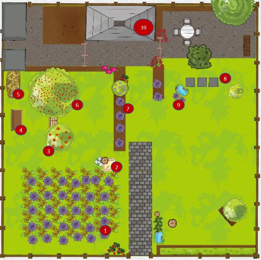 Hierzu wecken wir einen kleinen Dornröschen-garten, von einer Fläche mit 318qm, aus dessen Schlaf auf. In diesem soll eine Wildblumenwiese, Unterkünfte für unsere Bienen und Wildbienen, Tränken, Lesesteinhaufen, Hochbeete, Totholzstapel sowie ein reiches Nektar und Pollen Angebot durch Sträuchern und Pflanzen "Erschaffen" und "Angepflanzt" werden.