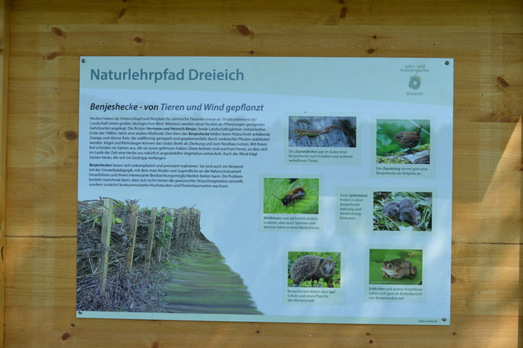 Auf Anregung Dreieicher Bürger und Schulen wurde die Idee geboren einen Lehr- und Kräutergarten, im Landschaftsschutzgebiet Baierhansenwiesen ins Leben zu rufe. Schnell fanden sich einige Interessierte Bürger, Naturschutzverbände und Vereine aus Dreieich, um das Projekt zu starten. Innerhalb von nur acht Wochen wurde ein vermülltes Grundstück von 150 Kubikmetern Müll gereinigt und der Rohbau erstellt. Dank vieler helfenden Händen konnte der Garten bereits nach nur 10 Wochen unter großer Anteilnahme der Dreieicher Bürger eröffnet werden. Im ersten Jahr waren bereits 9.000 Besucher im Lehr- und Kräutergarten und 1.300 Schüler und Senioren nahmen an Führungen und Workshops teil. Um das Projekt auf rechtlichen Füßen zu stellen gründenden die Beteiligten den Verein Lehr- und Kräutergarten Dreieich e.V. Die Gartenanlagen finanziert sich ausschließlich aus Spenden. Auf Anregungen der örtlichen Schule wurde der Garten im April um einen Naturlehrpfad, 1.600 qm Bienenweide und einen Bienenschaukasten mit fünf Völkern erweitert. Das Projekt zeiht mittlerweile Besucher aus dem gesamten Ballungsgebiet Rhein Main an. Das Interesse ist mittlerweile so groß das der Hessische Rundfunk bereits zweimal über das Projekt berichtet hat. Über 70 Presseartikel sind in den letzten Monaten erschienen. Mehr Informationen unter: https://www.kraeutergarten-dreieich.de/