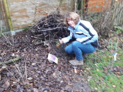 Projekt 2 Eine riesige Forsythienhecke ca. 15 qm wurde im Herbst 2018 entfernt und durch heimische Sträucher ersetzt. In die Zwischenräume wurden im Winter 2018 Winterlinge, Schneeglöckchen und Krokusse gesetzt. Die vorgezogenen Stauden wie Fingerhut wurden dieses Frühjahr gepflanzt.