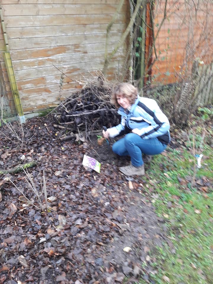Projekt 2 Eine riesige Forsythienhecke ca. 15 qm wurde im Herbst 2018 entfernt und durch heimische Sträucher ersetzt. In die Zwischenräume wurden im Winter 2018 Winterlinge, Schneeglöckchen und Krokusse gesetzt. Die vorgezogenen Stauden wie Fingerhut wurden dieses Frühjahr gepflanzt.