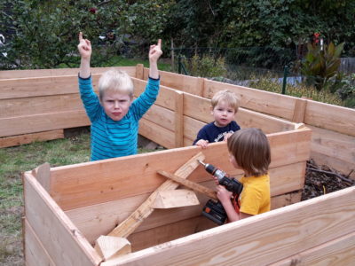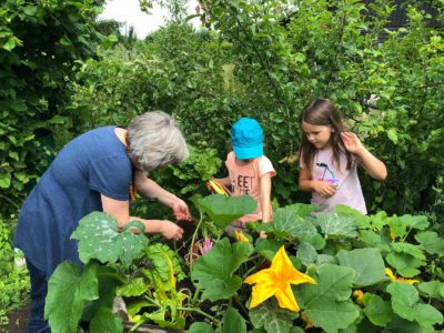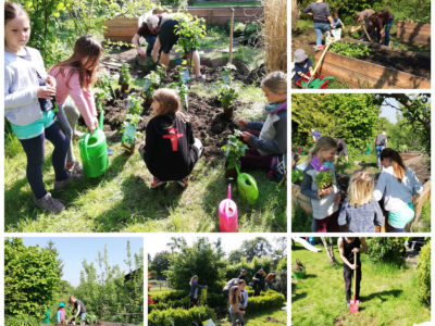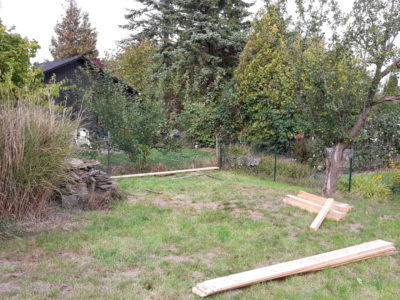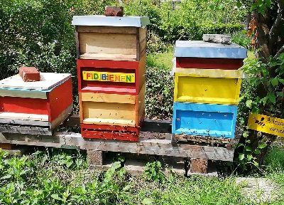 Seit dem Spätsommer 2018 dürfen wir aber zusätzlich auf der Parzelle unserer Mitarbeiterin ackern. Einmal die Woche machen sich die Fidis mit dem Bollwerwagen auf den Weg zur Parzelle. Im Herbst haben dort fleißige Väter mit den Kindern ein großes Hochbeet errichtet. Unsere Imkerei haben wir ebenfalls hier platziert.