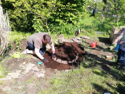 Nun heißt es, Ärmel hochkrempeln und buddeln, was das Zeug hält. Bisher wurde diese Parzelle nur zum "Grillen" genutzt. Wir wollen, dass die Parzelle ein gedeckter Tisch für (Wild-)Bienen und andere Insekten wird. Groß und Klein fassen mit an und freuen sich darauf, eine neue Herausforderung in Angriff zu nehmen. Unseren Honigbienen haben wir im Herbst bereits ein Feld voller Frühblüher geschaffen, Sträucher gesetzt, die besonders am Ende des Frühjahrs blühen und die Bienen anlocken. Die ersten Nachbarn der Parzelle haben wir schon angesteckt, erste Wildblumenwiesen sind in Planung :-)