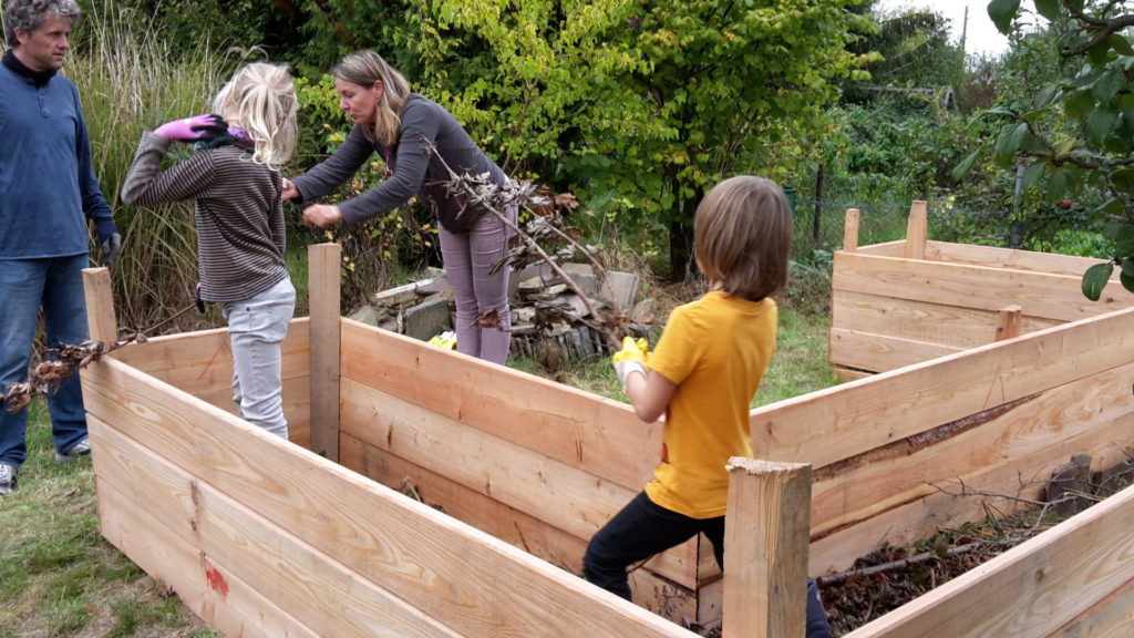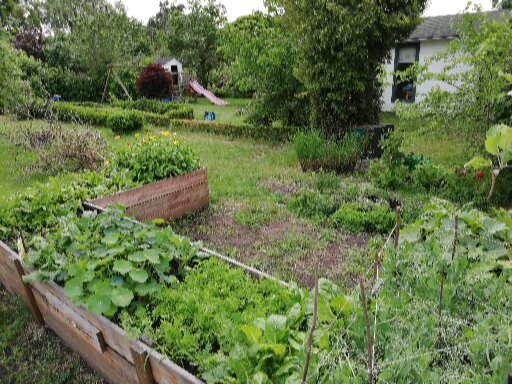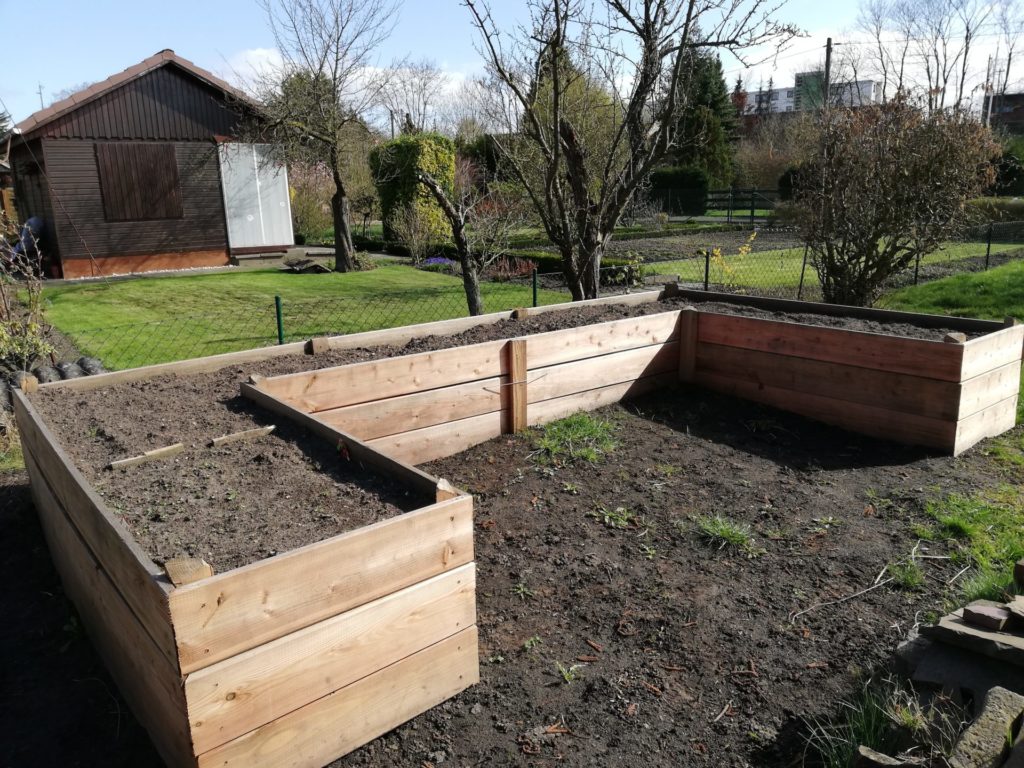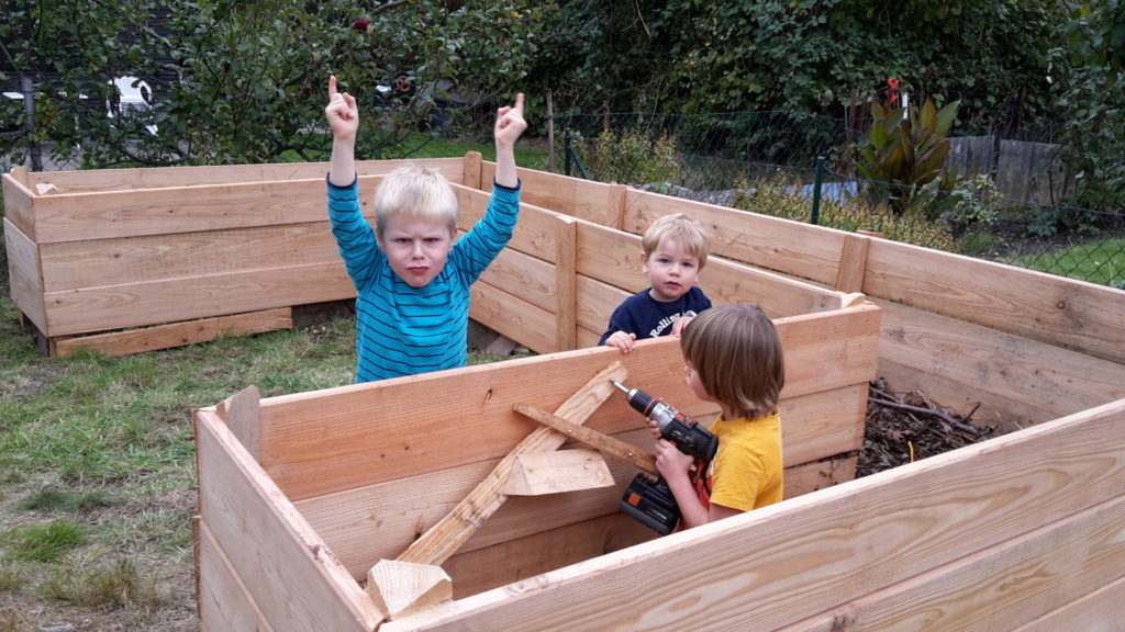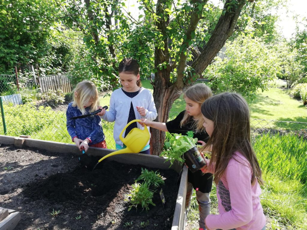Seit dem Spätsommer 2018 dürfen wir aber zusätzlich auf der Parzelle unserer Mitarbeiterin ackern. Einmal die Woche machen sich die Fidis mit dem Bollwerwagen auf den Weg zur Parzelle. Im Herbst haben dort fleißige Väter mit den Kindern ein großes Hochbeet errichtet. Unsere Imkerei haben wir ebenfalls hier platziert.