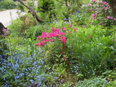Später im Sommer kommen Akeleien, Ungef. Rosen, Fingerhut, Schwertlilien, Iris, Taglilien, Funkien, Paeonien, Nachtkerzen und einige mehr.