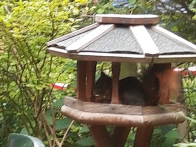 Aber auch Eichhörnchen, Spatzen, Kleiber, Rotkehlchen, Amseln, Kohlmeisen, Dompfaff laben sich hier gerne.