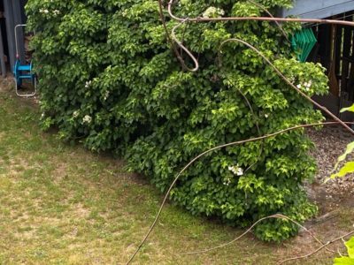 Naturnahe Hecke aus: Schwarzen Holunder, Gewöhnlicher Flieder, Haselnuss, Gemeiner Schneeball, Hartriegel, Pfaffenhüttchen, Wildrosen…