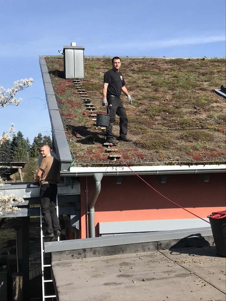 Extensive Dachbegrünung: Mauerpfeffer, Fetthenne, diverse Kräuter wie z. B. Schnittlauch und Gräser