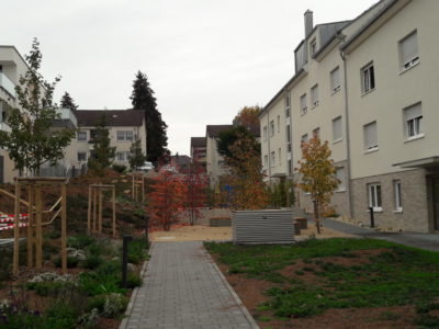 Durch die Umgestaltung der Außenanlage wurde ein attraktiver Außenbereich für die Mieter geschaffen und gleichzeitig dem Leben in der Stadt eine Verbindung zur Natur gegeben, die sich nicht nur auf eine einfache Rasenfläche mit ein paar Sträuchern reduziert.