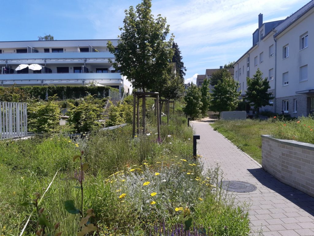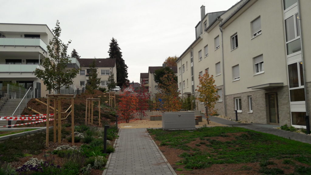 Durch die Umgestaltung der Außenanlage wurde ein attraktiver Außenbereich für die Mieter geschaffen und gleichzeitig dem Leben in der Stadt eine Verbindung zur Natur gegeben, die sich nicht nur auf eine einfache Rasenfläche mit ein paar Sträuchern reduziert.
