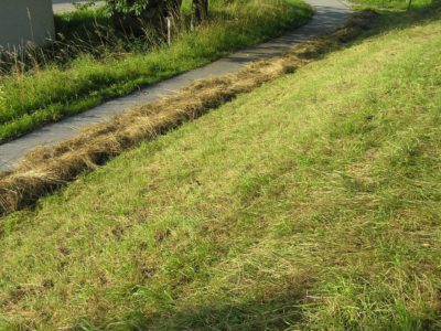 Der Aufwuchs bei den Außen und Innenseiten der Dämme wurde bisher gemulcht, das Mähgut liegen gelassen