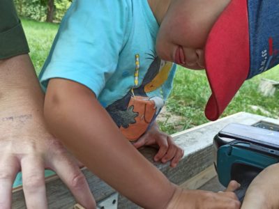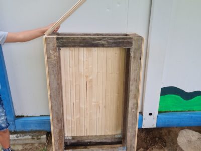 Mit vereinten Kräften wurden dann die Bretter fein säuberlich in das Insektenhotel verschraubt. Besonders Filo, Henry, Felix und Emil waren eine riesige Hilfe dabei und versenkten eine Schraube nach der anderen im Holz.