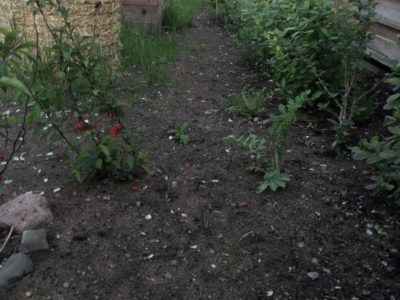 Außerdem durften in diesem Frühjahr an anderer Stelle endlich auch Lungenkraut, Frühlingsplatterbsen, Breitblättrige Platterbsen, Nesselblättrige Glockenblume, Gundermann, Gemeiner Hornklee, ein Behaarter Ginster, Bronzefenchel und ein Spalier-Birnbaum einziehen. Kriechender Günsel, Knoblauchsrauke, Nachtkerzen, Ochsenzunge, Ferkelkraut, Taubenkropfleimkraut, purpurrote und weiße Taubnesseln haben sich von allein eingefunden und dürfen natürlich bleiben!