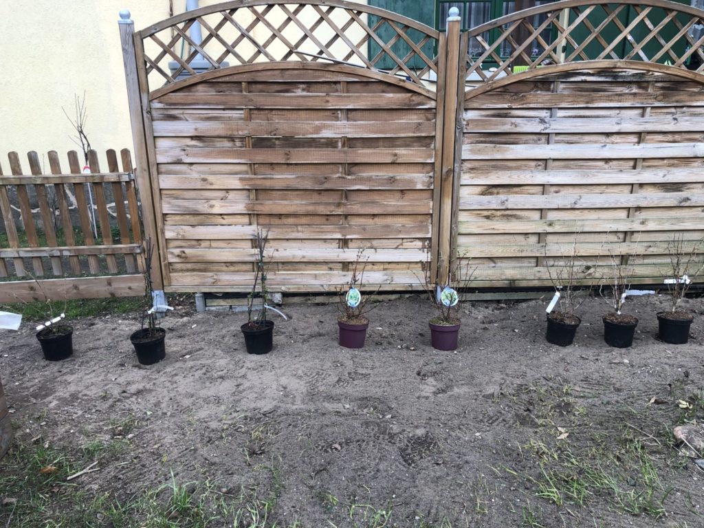 Gehölze/ Sträucher: Gemeine Berberitzen, Rosa Glauca, Apothekerrose, Rosa pimpinellifolia Single red, Rosa Alba Suaveolens, Zierquitte, Aronia, Sibirische Honigbeere.
