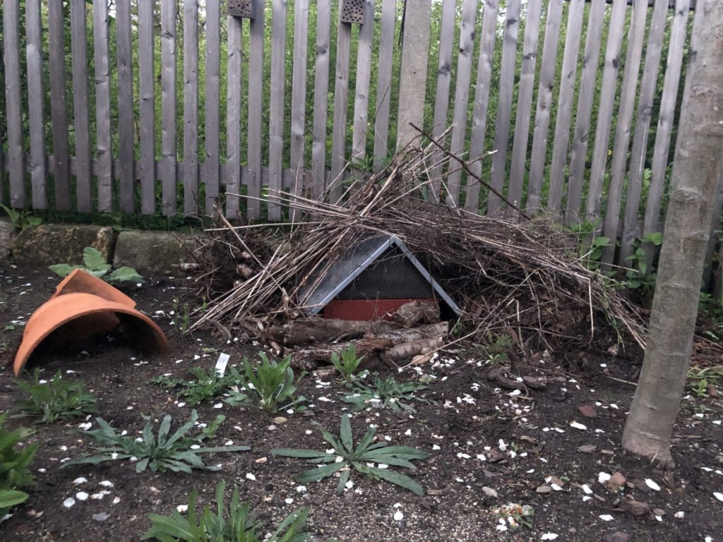 Seit dreieinhalb Jahren bewirtschaften wir unseren kleinen Reihenhausgarten in Dresden. Um den Garten für uns zunächst überhaupt nutzbar zu machen, haben wir gleich zu Beginn Unmengen an Wildem Wein und zwei Lebensbaumhecken entfernt. Wir haben ein altes Schuppenfundament entfernt, einen Sandkasten für die Kinder angelegt und zwei Apfelbäume gepflanzt. Im vergangenen Jahr haben wir einen riesengroßen Bambus entfernt. Die Terrasse haben wir mit gebrauchten Granitsteinen neu gepflastert, die Fugen wurden bewusst breit angelegt um die Fugenmischung der Gärtnerei Strickler auszusäen. Vor allem Mauerpfeffer und Thymian fühlen sich in unseren Fugen wohl. Bis die Fugen ordentlich begrünt sind, wird es wohl noch ein wenig dauern. In diesem Frühjahr haben wir eine Knallerbsen-Flieder-Hecke entfernt und mit einheimischen Sträuchern, naturnahen Rosen und Obststräuchern neu angelegt. Zwischen die Gehölze haben wir den Trockenen Saum von Hof Berggarten gesät und gepflanzt. Außerdem wurde ein von Herbstastern und Topinambur überwuchertes Beet bienen- und insektenfreundlich gestaltet. Es kommen bis auf den Muskatteller-Salbei und Bronzefenchel mit besten Wissen und Gewissen nur heimische Arten im Saum und im beschriebenen Beet zum Einsatz.