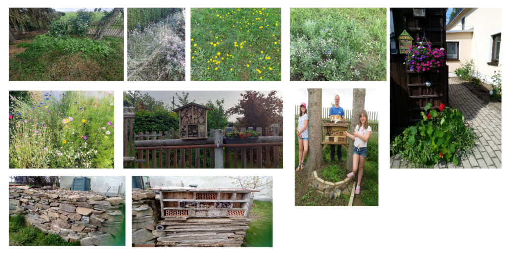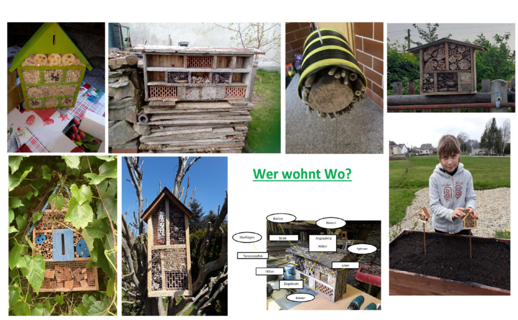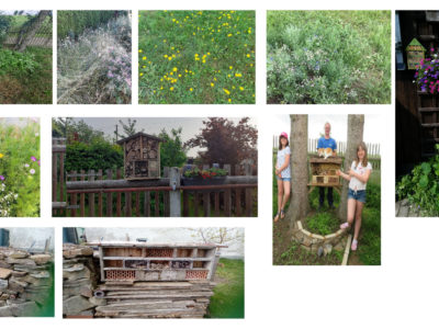 So sind in alleine, zu zweit, mit Hilfe von Mama, Papa, Oma oder Opa viele kleine Flächen entstanden, wo sich Insekten aller Art zurückziehen können. Dabei wurde nicht nur fleißig gegraben, gesät und gepflanzt, sondern es sind in mühesamer Handarbeit etliche Insektenhotels entstanden.
