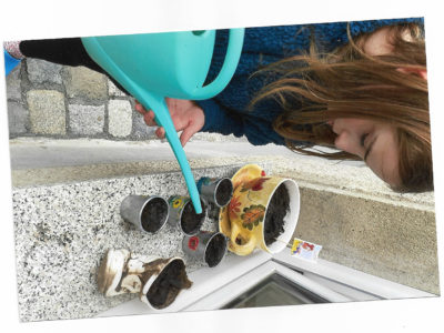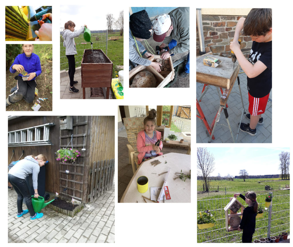 Da zu diesem Zeitpunkt noch niemand die Schule betreten und sich keine Gruppen versammeln durften, beschlossen wir viele kleine Einzelprojekte zu starten. Jeder sollte sich zu Hause - im Garten, auf dem Balkon oder auf der Terasse ein kleines Refugium suchen und dies bienenfreundlich gestalten.