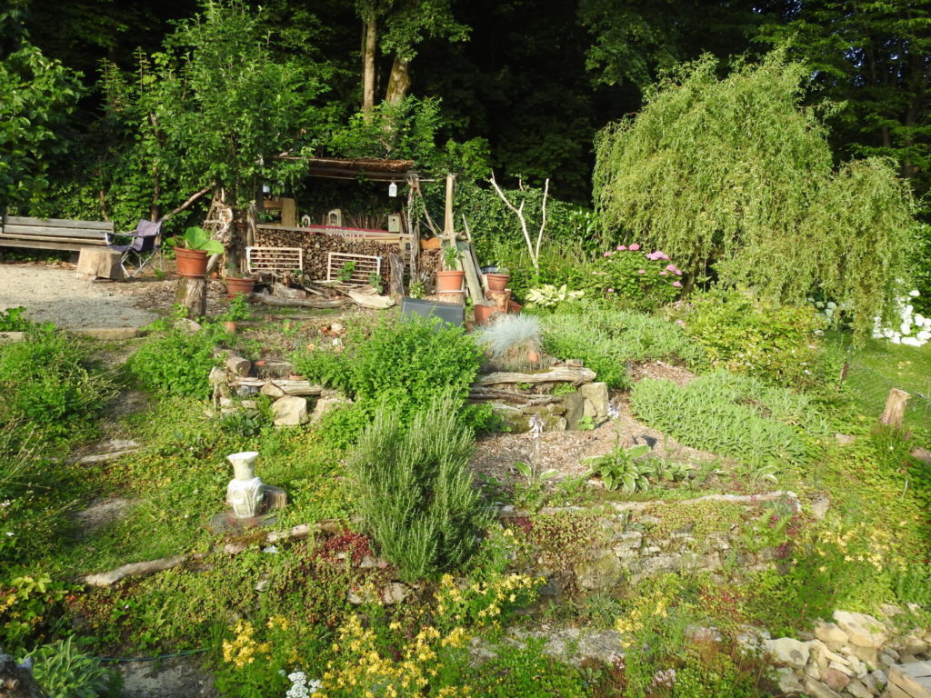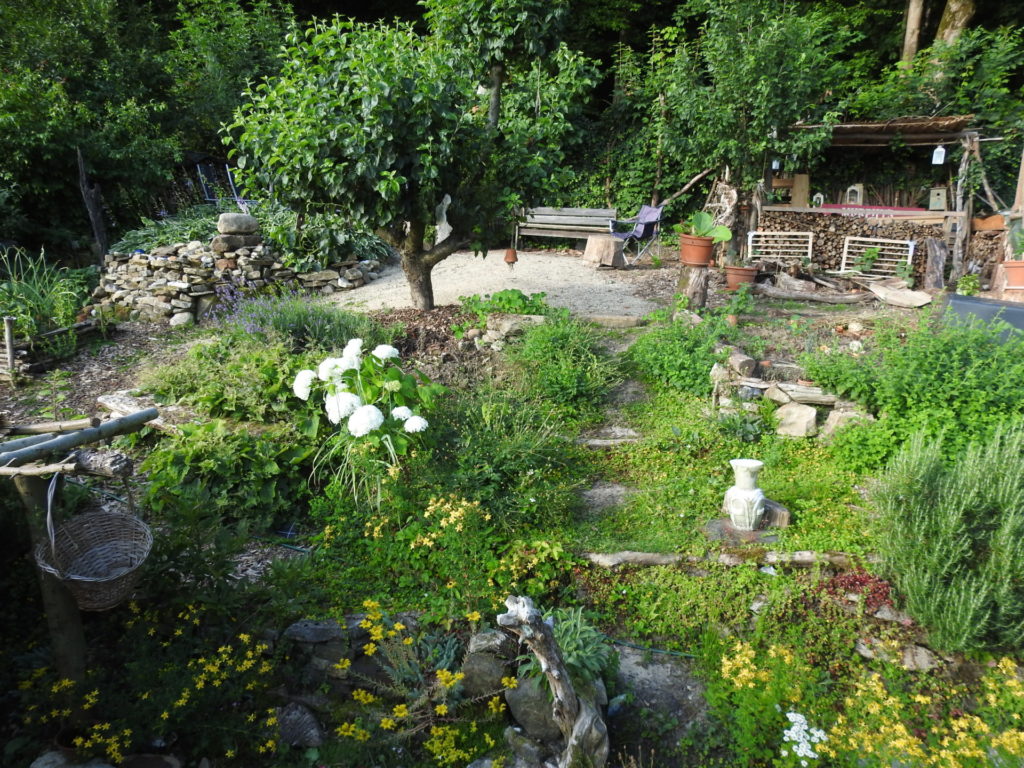 Rest in den Hochbeeten. Die freien Flächen haben wir bepflanzt bzw. mit Wildblumen eingesät.
