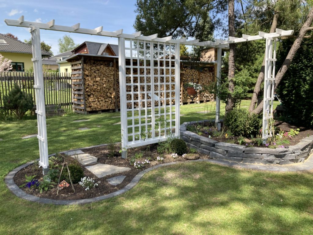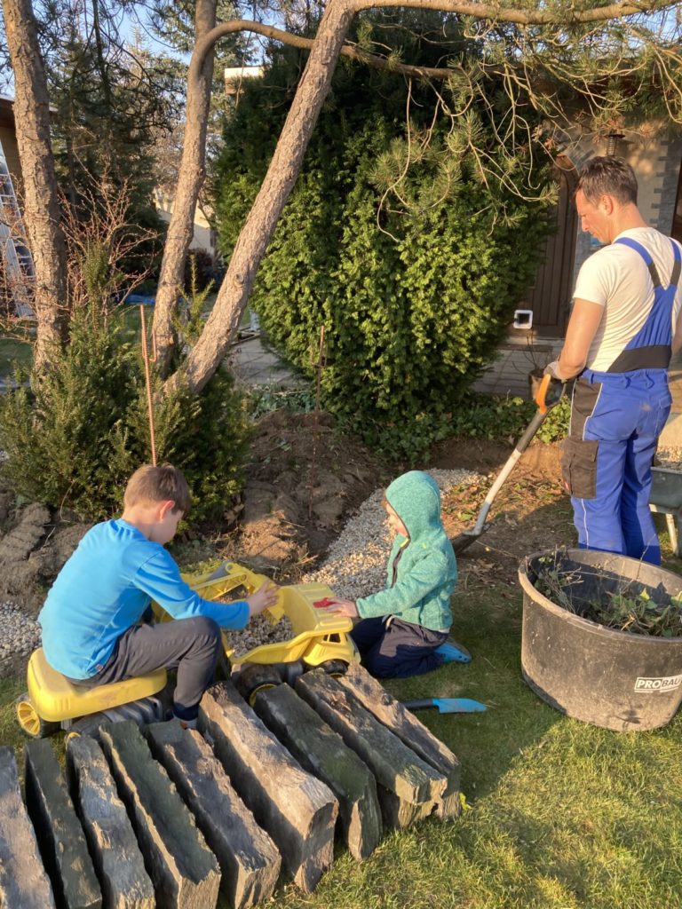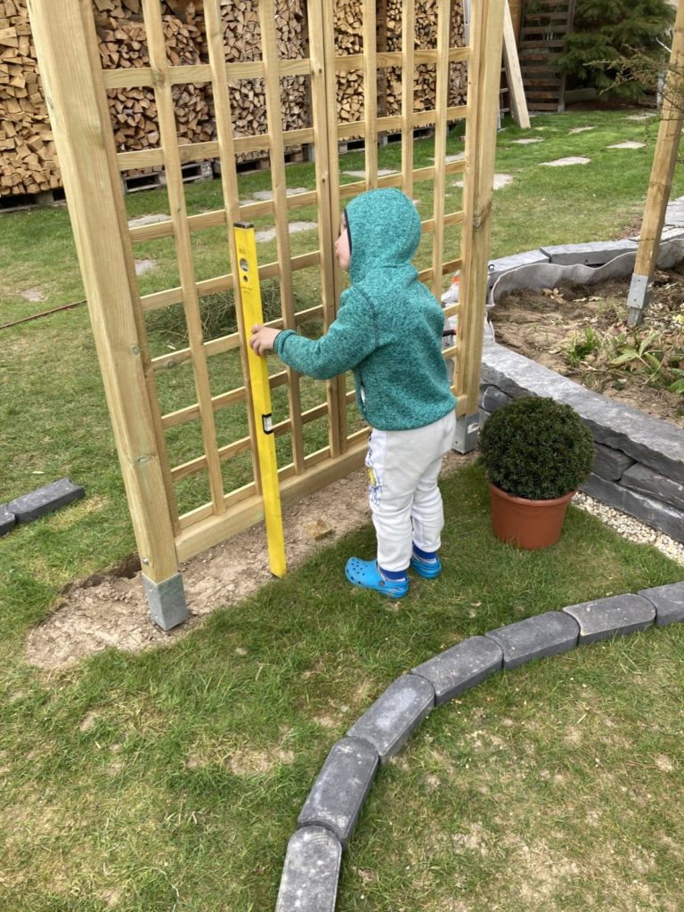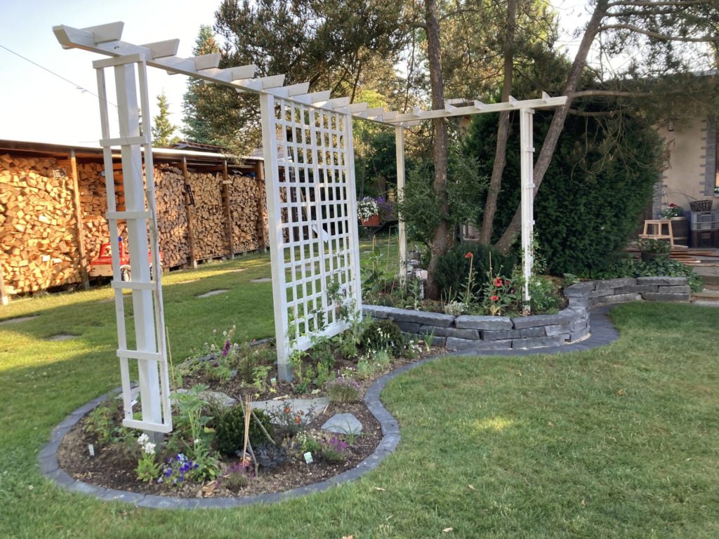 In diesem Jahr haben wir ab März einen Gartenbereich völlig umgestaltet, um ihn bienenfreundlicher zu machen. Wir haben als Familie in Eigenleistung ein Hochbeet mit Natursteinmauer, eine Pergola und ein Bienenhotel gebaut und freuen uns nun, wenn es summt im Garten.