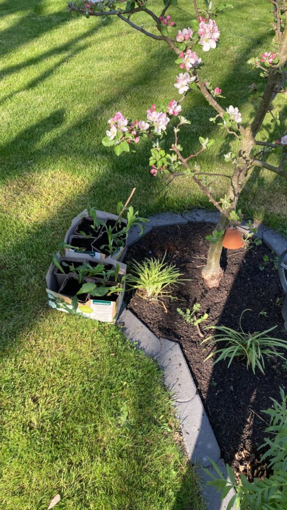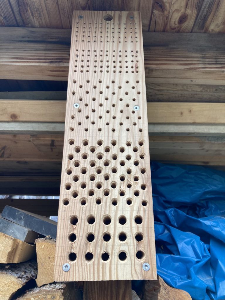 Nachdem wir in den letzten Jahren bereits eine Blühhecke mit heimischen Laubgehözen wie Kornelkirsche, Felsenbirne und Pfaffenhütchen, einen Stein- und Totholzhaufen und ein wildes Schmetterlingseck gebaut hatten, ist nun ein weiterer Teil unseres Gartens insektenfreundlicher geworden.