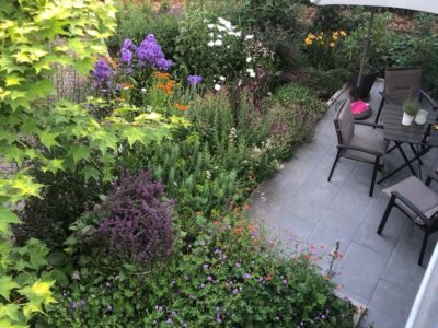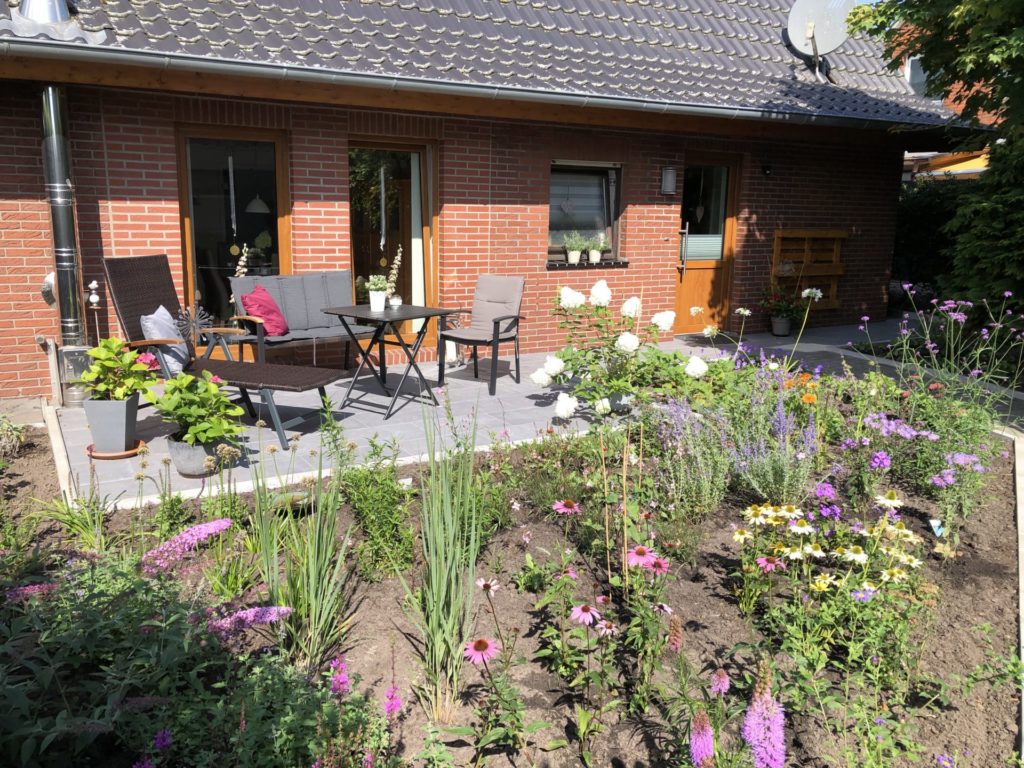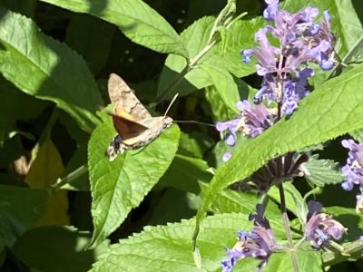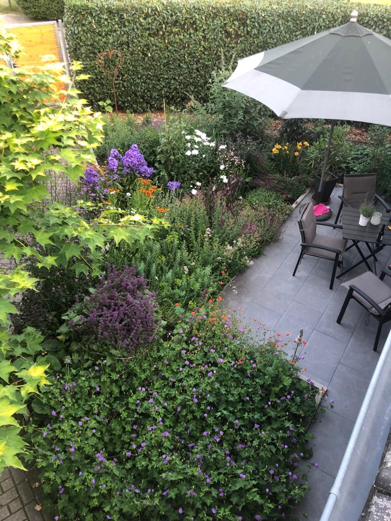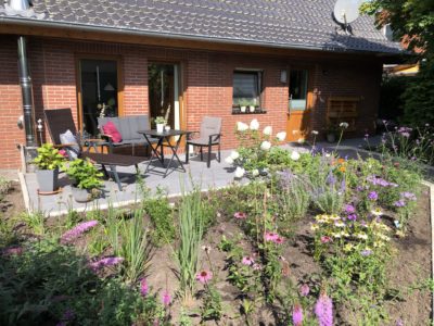 Im letzten Jahr haben wir einen Teil unseres Gartens von einer Rasenfläche zu einem insektenfreundlichen Staudenbeet angelegt. Viele unterschiedliche Stauden , darunter Glockenblumen, Echter Dost, Fetthenne, Scharfgarbe, Patagonisches Eisenkraut, Quirlblütiger Salb, Wiesenstorchschnabel, Wiesensalbei, Sommerflieder , Bewimperter Felberich und einige andere prägen nun das Bild und wir freuen uns täglich an den vielen Farben und jede Menge 🦋🐝🦋🐞🪲🪰. Besonders viel Freude haben wir an vielen Taubenschwänzchen, die sich hier sehr wohl fühlen. Einfach nur schön 🤩