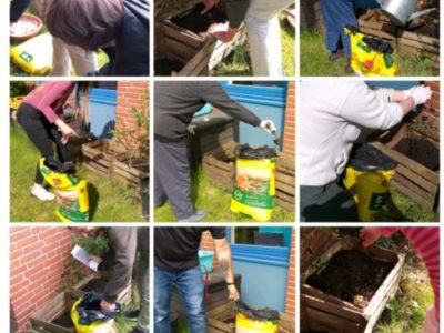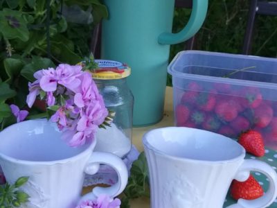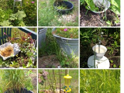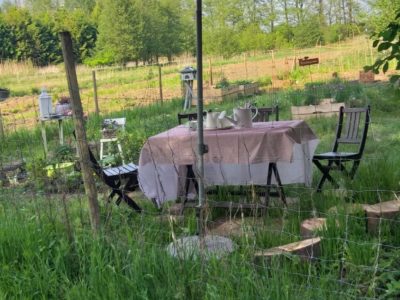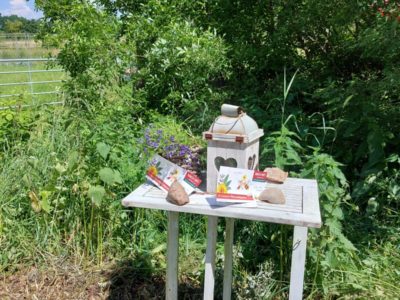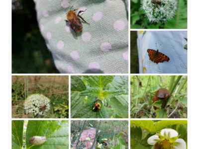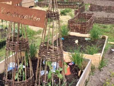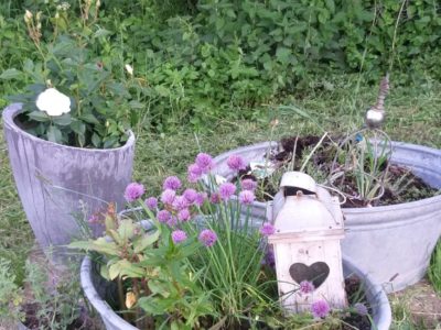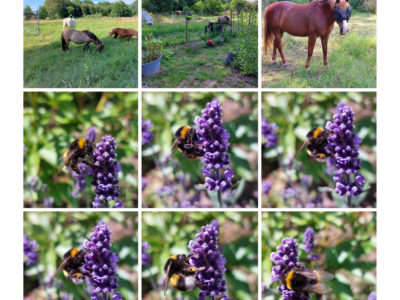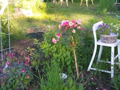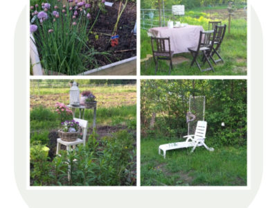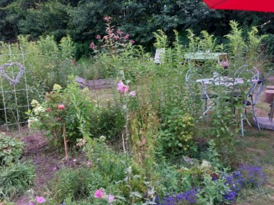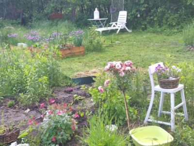 Viele heimische Pflanzen haben wir nicht gepflanzt… Vogelbeeren, Schwarzer Holunder, Brombeeren, Gundermann, Brennnessel, Gemeiner Hohlzahn, Acker-Rettich waren schon da. Dazu haben wir Schneeball, Woll-Ziest, Kornblumen, Minze, Dill, Katzenminze, Malve, Salbei, Viola, Rosen, Vergissmeinicht etc. gepflanzt.