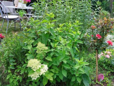 Hortensien, Taglilie, Dahlien, China Rose, Salbei, Sonnenblumen, Lavendel, Männertreu, Fingerhut, Margeriten, Alium, Hosta, Goldrute, Ackelei etc. Frauenmantel, Flieder, Distel