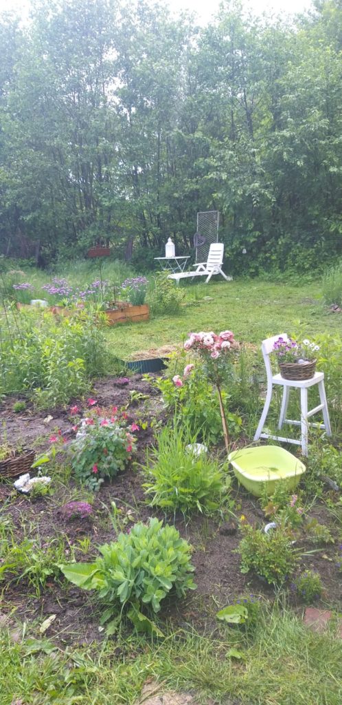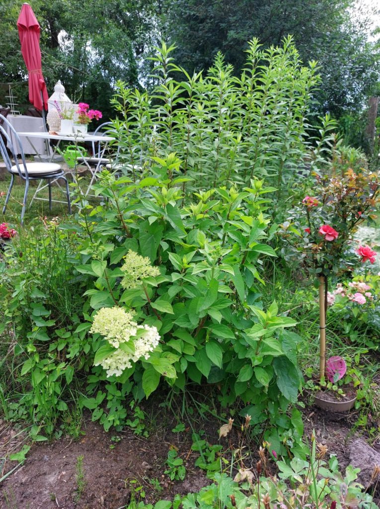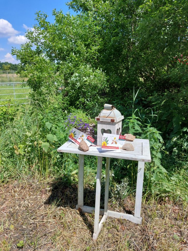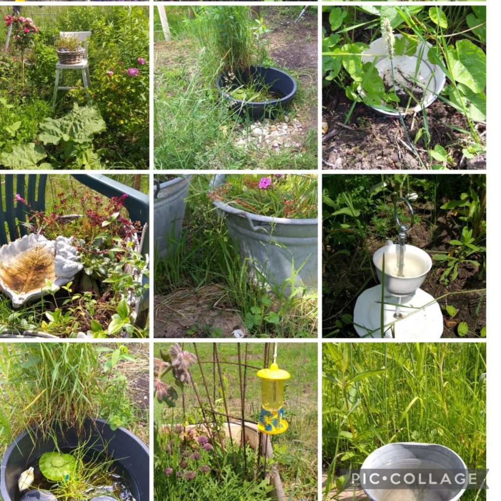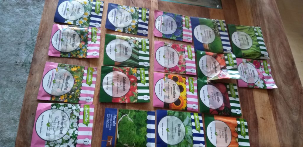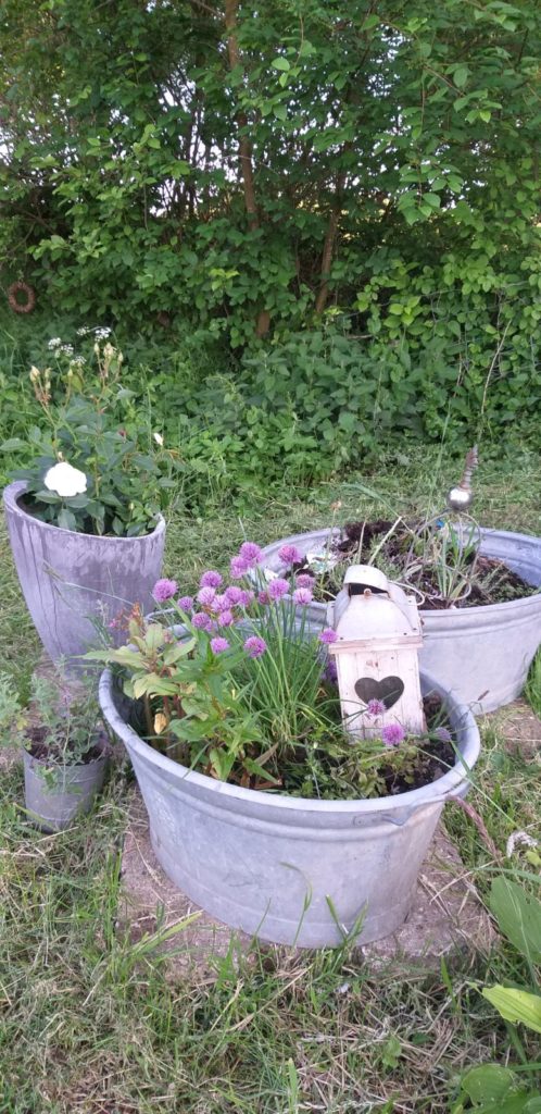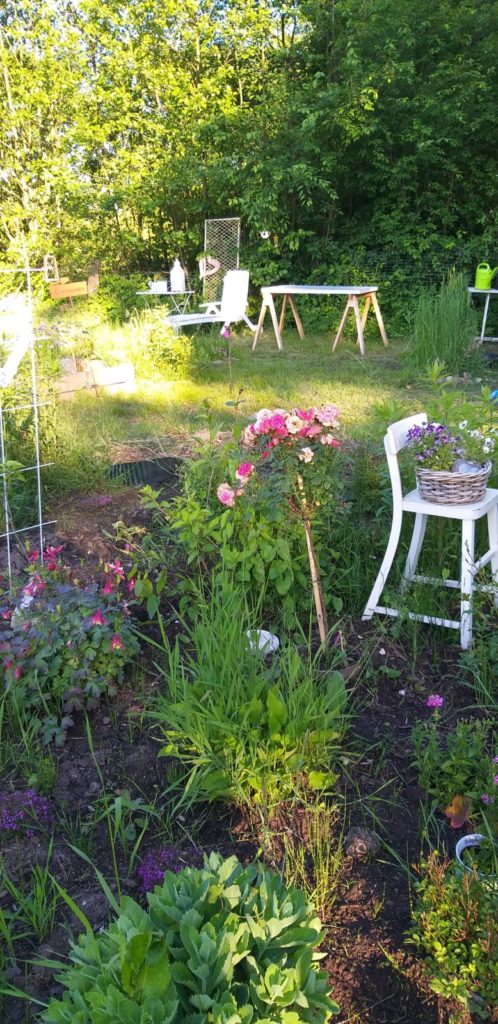 Viele heimische Pflanzen haben wir nicht gepflanzt… Vogelbeeren, Schwarzer Holunder, Brombeeren, Gundermann, Brennnessel, Gemeiner Hohlzahn, Acker-Rettich waren schon da. Dazu haben wir Schneeball, Woll-Ziest, Kornblumen, Minze, Dill, Katzenminze, Malve, Salbei, Viola, Rosen, Vergissmeinicht etc. gepflanzt.