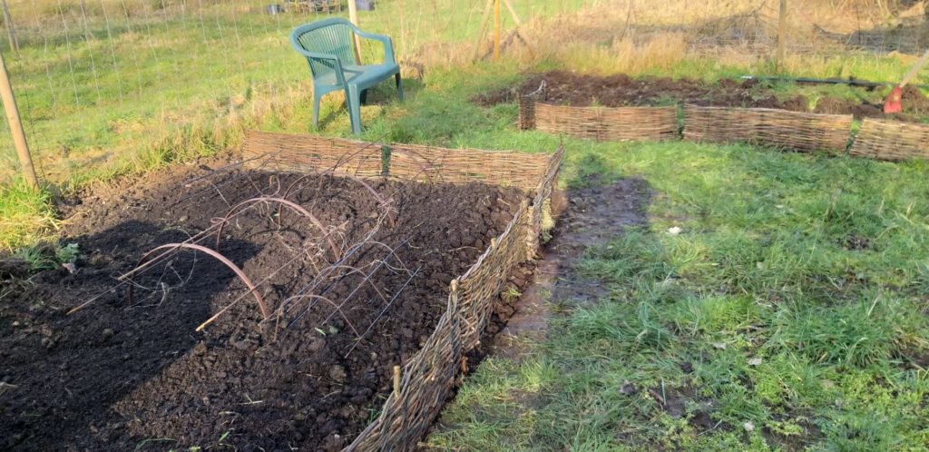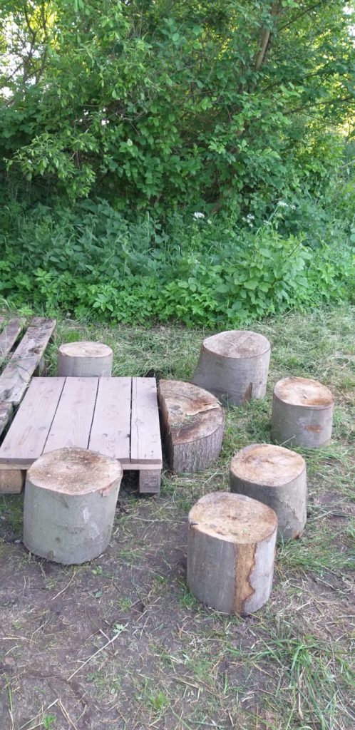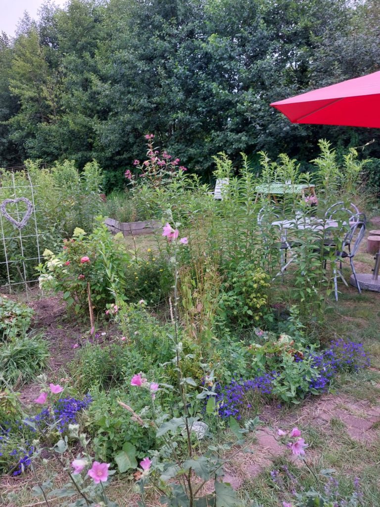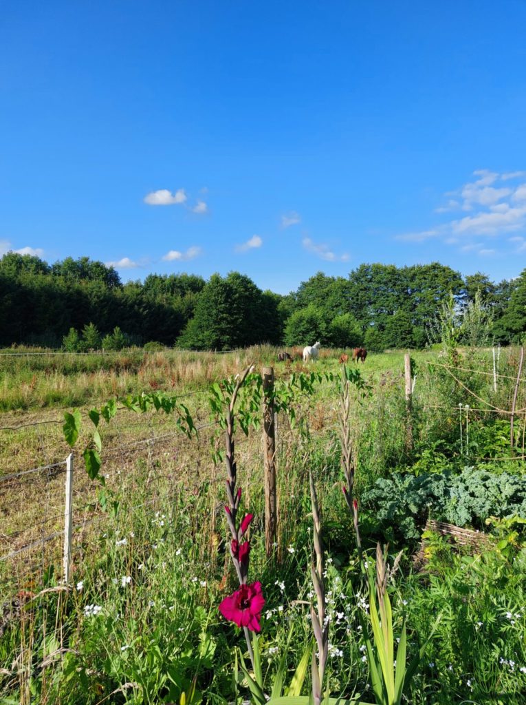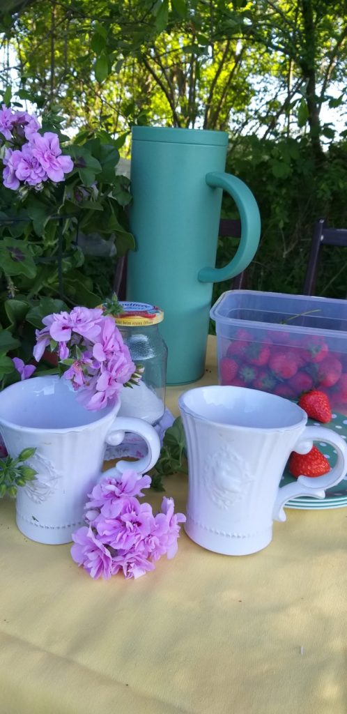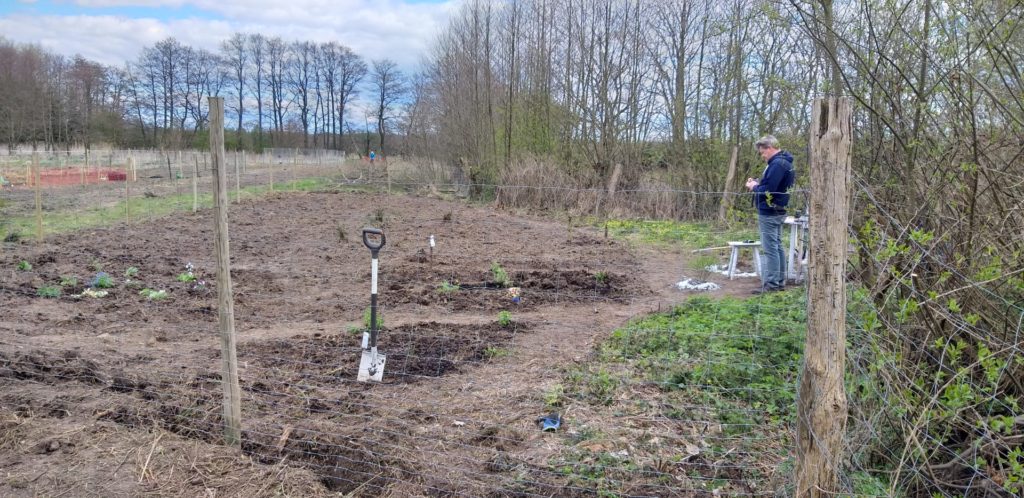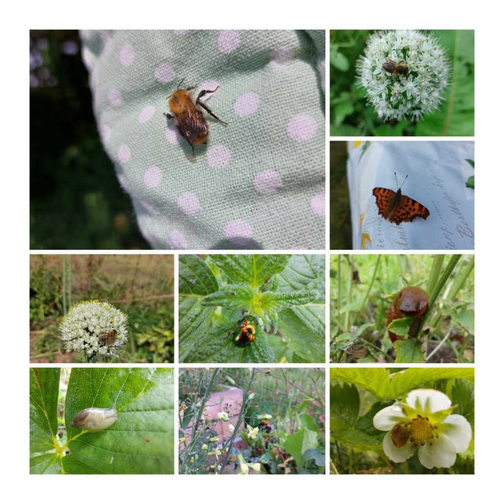 Viele heimische Pflanzen haben wir nicht gepflanzt… Vogelbeeren, Schwarzer Holunder, Brombeeren, Gundermann, Brennnessel, Gemeiner Hohlzahn, Acker-Rettich waren schon da. Dazu haben wir Schneeball, Woll-Ziest, Kornblumen, Minze, Dill, Katzenminze, Malve, Salbei, Viola, Rosen, Vergissmeinicht etc. gepflanzt.