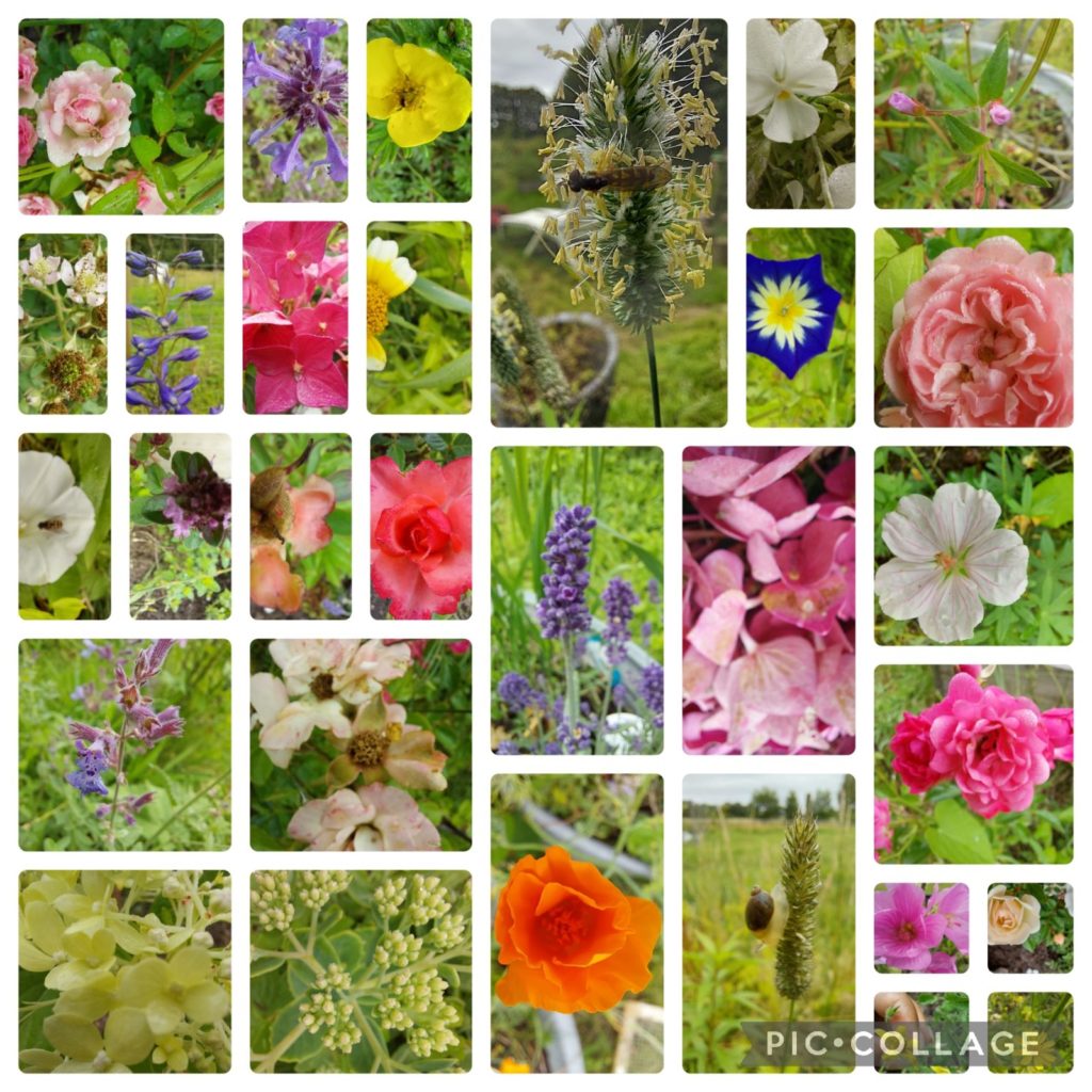 Hortensien, Taglilie, Dahlien, China Rose, Salbei, Sonnenblumen, Lavendel, Männertreu, Fingerhut, Margeriten, Alium, Hosta, Goldrute, Ackelei etc. Frauenmantel, Flieder, Distel