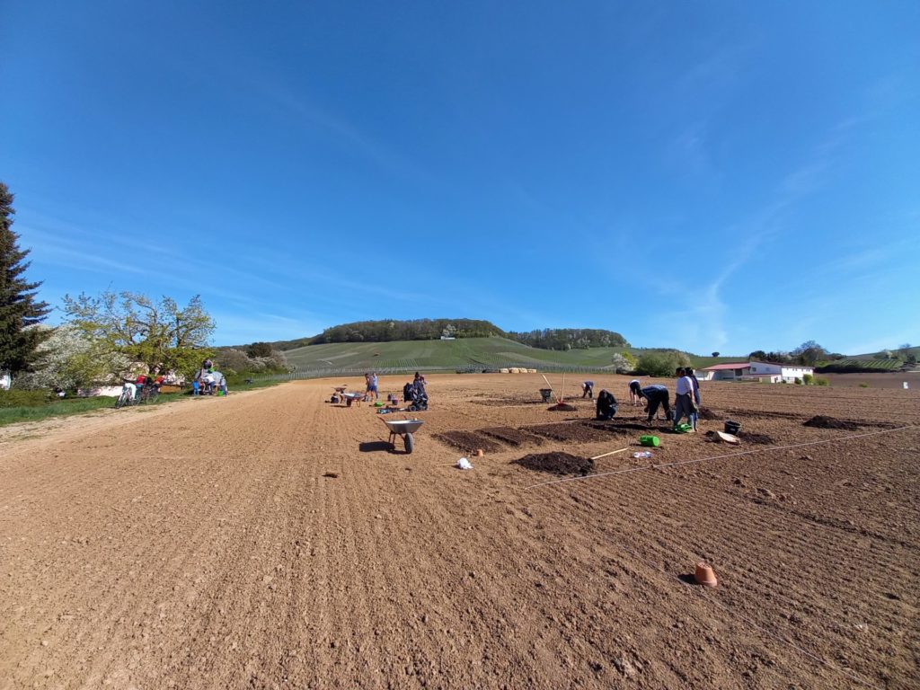 Zusätzlich zu unserem Gemeinschaftsgärten-Projekt „Gartenglück“ setzen wir gemeinsam mit der Stadt Heilbronn das Ackerlandstreifen-Programm um. Dies beinhaltet das Pflanzen von insgesamt 12ha Ackerblühstreifen und eine Obstbaumallee mit ca. 125 gebietsheimischen Bäumen und Blumen. Das Programm hat das Ziel Biotope zu verbinden, Insekten Futter und Wohnraum zu bieten sowie Landschaft zu gestalten. Dies geschieht mit Obstbaumpflanzungen am Ackerrand und üppigen Blühstreifen. Gleichzeitig soll auch das Abschwemmen von Erde und Humus vom Acker auf die Straße verhindert werden.