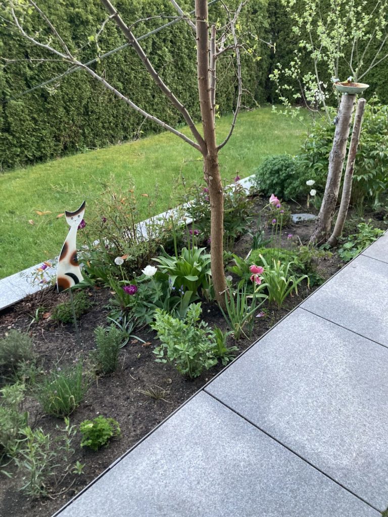 Zu Anfang war unser Garten verwahrlost. In den letzten Jahren haben wir viele Blumen und Bäume gepflanzt, ein Kräuterbeet angelegt und einen Obst- und Gemüsegarten geplant. Alles immer mit dem Ziel „so natürlich, nachhaltig und tierfreundlich wie nur möglich „.