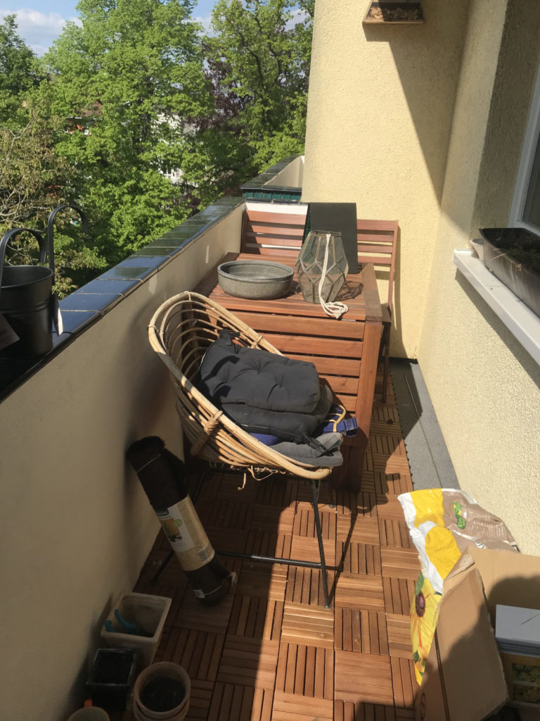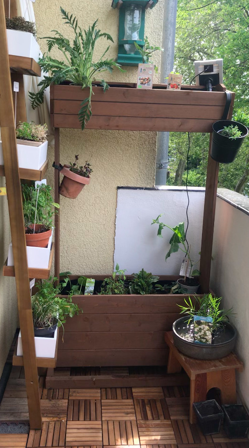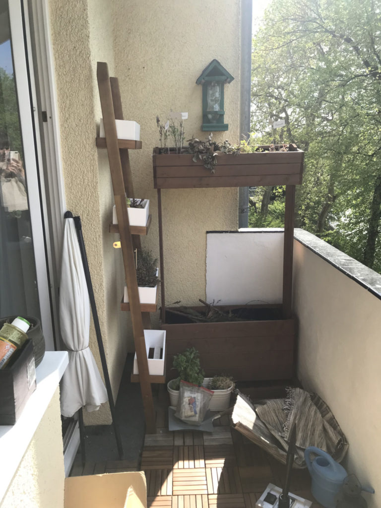 Mein Sohn und ich sind beide Natur- und Gartenbegeisterte. Wir haben uns nach dem Umzug wieder eine grüne Oase zu Hause gewünscht und deshalb den Balkon neu gestaltet. Besonders gerne mögen wir es, das Plätschern des Brunnens zu hören und von den Kräutern und den Erdbeeren zu probieren.