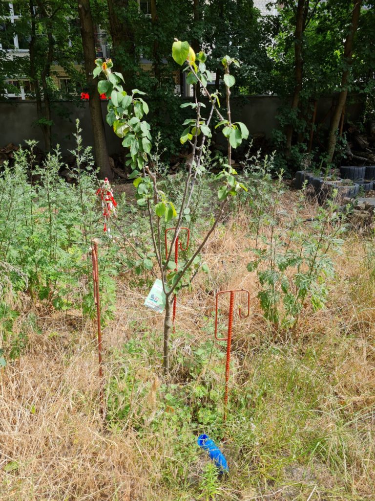Gehölze: Apfelbaum, Berberitze, Felsenbirne, Gewöhnlicher Flieder, Kirschpflaume, Sommerflieder