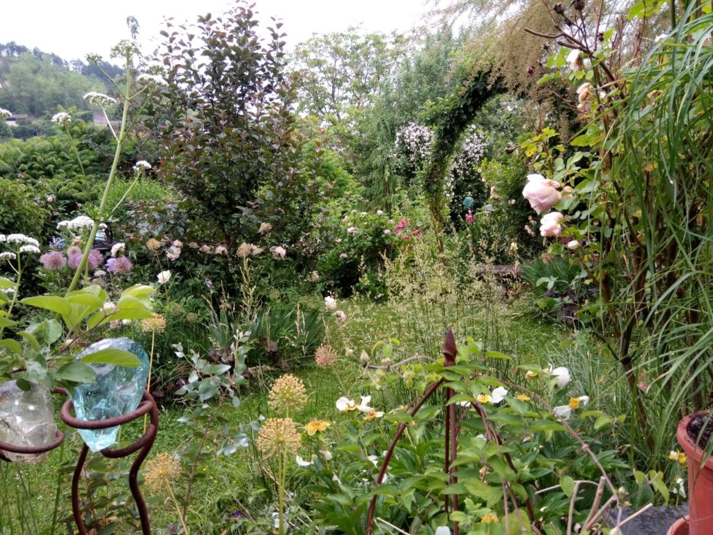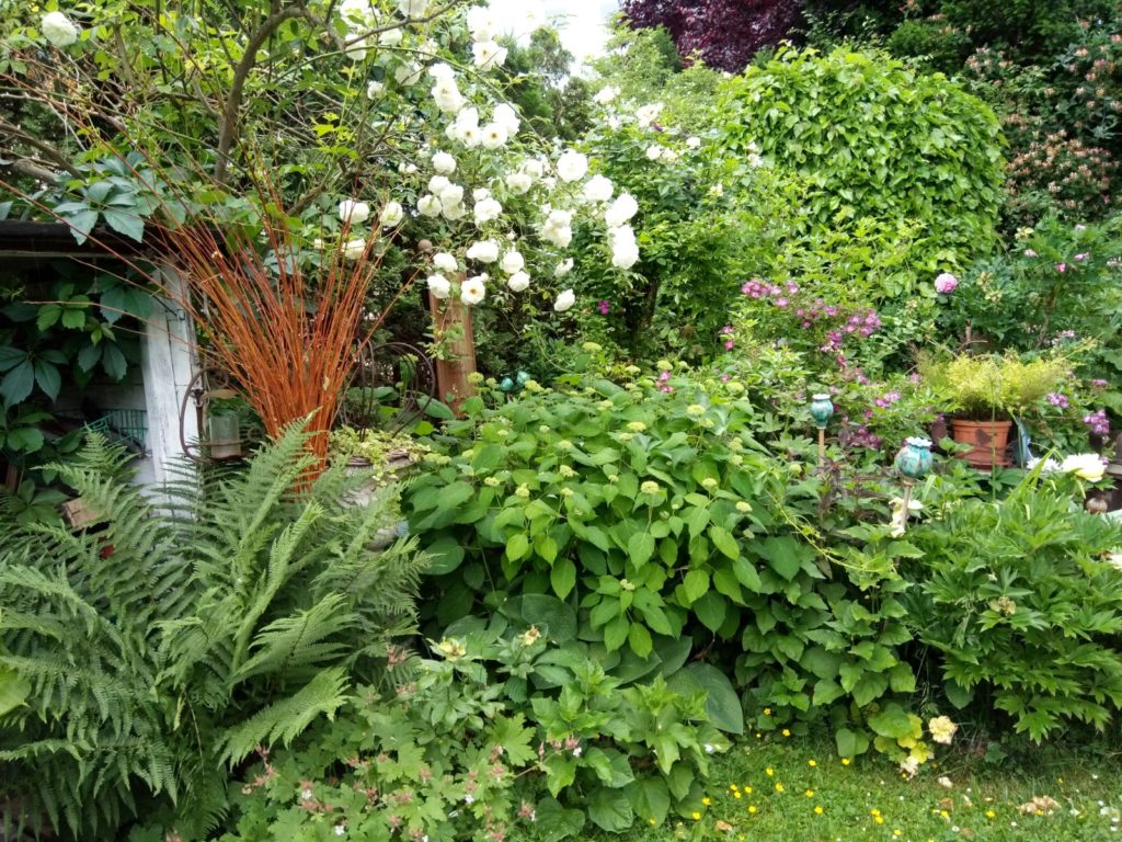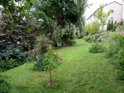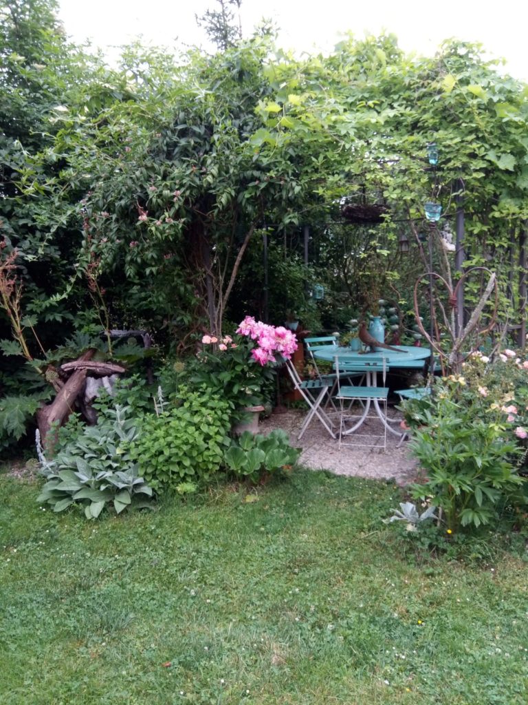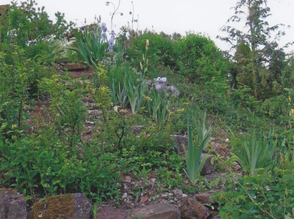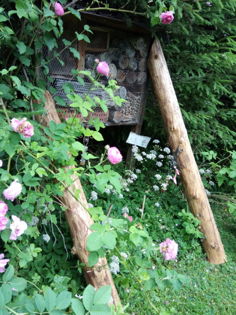 Vor fast 20 Jahren reifte der Wunsch, mir ein kleines Paradies zu schaffen, mit viel Platz für Fauna und Flora. Da mein Garten sehr groß ist habe ich mich beim Anlegen schon darauf konzentriert, mit Pflanzen zu arbeiten, die gut mit Trockenheit zurechtkommen. Offene Schalenformen, Samenansatz (keine Hybriden) und Duft wahren und sind für mich Pflanzkriterien. Durch ausgewählte Sträucher, wie Strauchrosen, Sanddorn, Felsenbirne, Wacholder, Maulbeerbaum, Eibe und weitere, wurde eine Vogelschutzhecke angelegt, die den Insekten im Frühjahr in Form von Blüten Nektar anbietet und die Beeren den Vögeln zur Nahrung dienen.