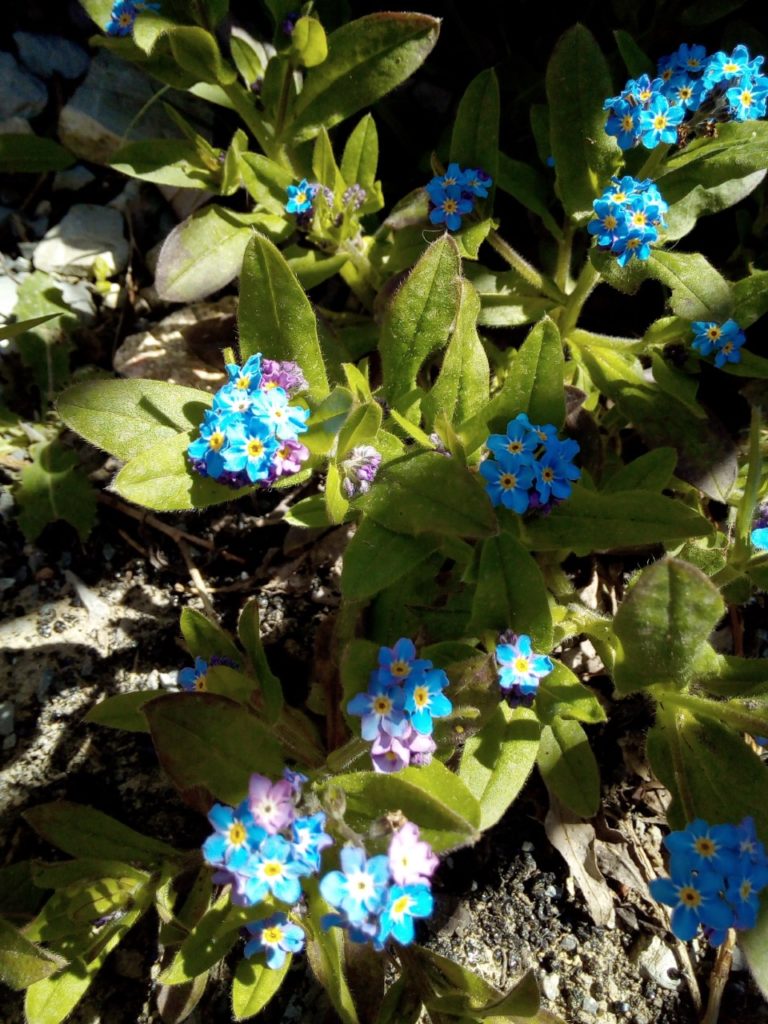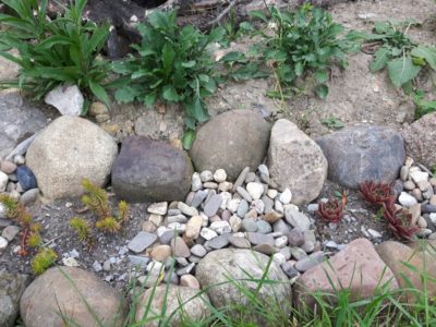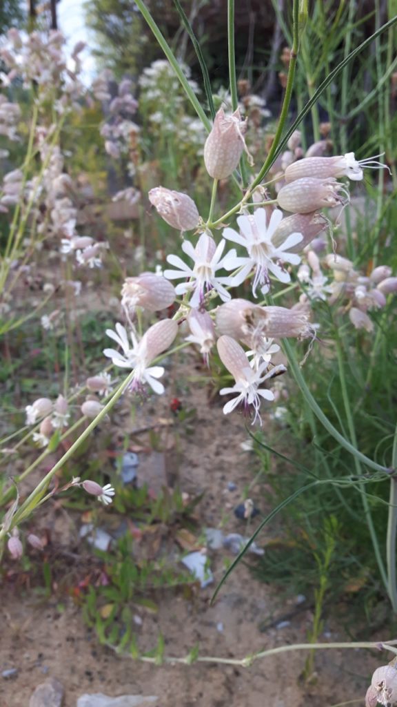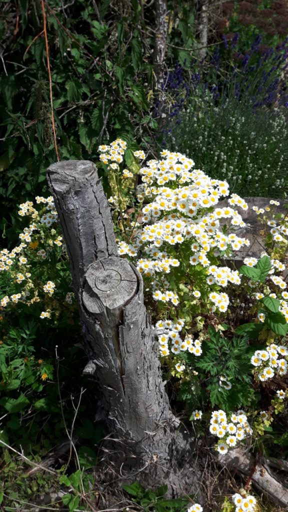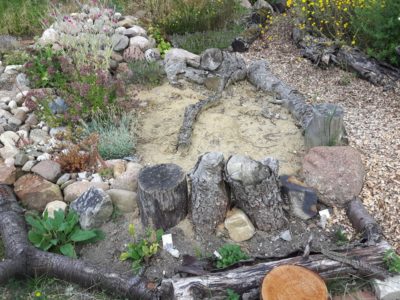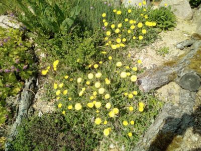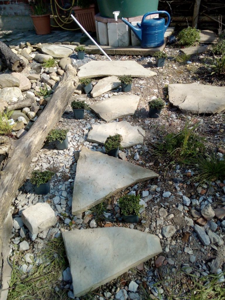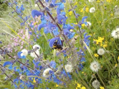 Stauden: Schleifenblume, Thymian, Steinbrech, Erdbeeren, verschiedene Polsterglockenblumen, Waldmeister, Zimbelkraut, Steinsame, Lavendel, Echtes Seifenkraut, Ross Minze, Gewöhnliche Schafgarbe, Karthäuser-Nelke, Sumpf-Wolfsmilch, Echtes Labkraut, Wiesen-Alant, Sibirische Schwertlilie, Magerwiesen-Margerite, Ausdauernder Lein, Gewöhnlicher Hornklee, Blut-Weiderich, Sumpf-Vergissmeinnicht, Wilder Majoran, Spitz-Wegerich, Wiesen-Salbei, Aufrechter Ziest, Edel-Gamander, Gamander-Ehrenpreis, Polei-Minze, Schmalblättriges Wollgras, Sumpf-Haarstrang