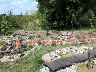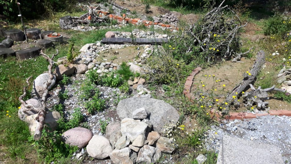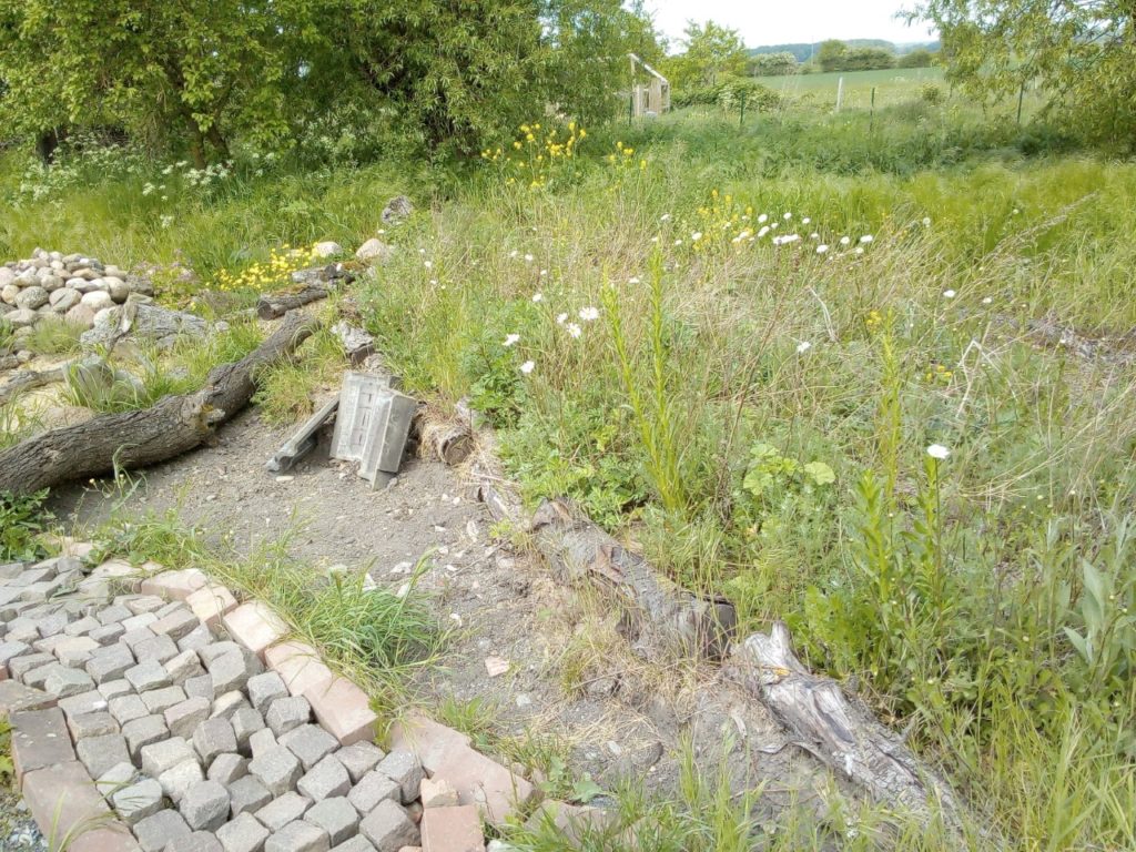 Ende 2019 habe ich angefangen unser Grundstück sinnvoller für die Natur zu gestalten. Da war meine erste Aktion eine große Totholzhecke an einer Grundstücksgrenze zu bauen. Diese wird mit Weidenzweigen gehalten die gewurzelt haben und noch richtige Bäume werden wollen. Die Totholzhecke ist mittlerweile sehr begehrt. Mehrere Vögel nisten z.B. darin, ein Hermelin und Erdkröten halten sich auch in deren Nähe auf. In den letzten zwei Jahren hat sich einiges zum Positiven auf unserem Grundstück gewandelt. Auf unserem Hof habe ich drei Magerbeete angelegt und gerade bin ich dabei ein, bzw. zwei Sumpfbeete neben einem der Magerbeete anzulegen. Diese Magerbeete haben ungewaschenen Sand als Substrat. Bei einem Beet habe ich einen Bereich nicht bepflanzt, damit Wildbienen, oder Eidechsen Möglichkeiten für ihren Nachwuchs haben. Mit dem Erdaushub habe ich einen kleinen Wall aufgeschüttet, der an einer Seite mit einer kleinen Trockenmauer aus alten Klinkern gehalten wird. Auf diesem Wall habe ich eine Mischhecke gesetzt und davor verschiedene Stauden, die extra als Futter für Schmetterlinge bzw. deren Raupen bekannt sind. Dieser Wall ist quasi die Grenze vom Hof zu unserem Garten. Im Garten selber ist eine bepflanzte Pyramide aus Waschbetonplatten zu finden. Weiterhin sind drei Sumpfbeete, zwei Miniteiche und ein Teich entstanden. Mit dem Erdaushub der Teiche, Magerbeete und Sumpfbeete im Garten habe ich einen Hügel aufgeschüttet, der an einer Seite auch wiederum mit einer kleinen Trockenmauer aus alten Klinkern gestaltet ist und dahinter ein schmales Magerbeet, bevor der Erdhügel mit Lehmboden beginnt. Dieser Erdhügel soll in Zukunft erst mal zum Anbau von Gemüse genutzt werden. Im Moment stehen dort Heckenpflanzen, die im Herbst an die richtige Stelle gesetzt werden. Auch eine kleine Blumenwiese auf magerem Boden und drei weitere Magerbeete wurden angelegt. Eine Eidechsenburg mit Sandarium davor ist im Bereich der Sumpfbeete, Magerbeete und der Wildblumenwiese zu finden. Zu meiner mehr als großen Freude wurde dieses Jahr das erste mal mehrmals eine Zauneidechse auf unserem Grundstück gesehen. Für diese Tiere einen passenden Lebensraum zu schaffen ist mir sehr wichtig. Offensichtlich gefällt es den Zauneidechsen auch bei uns. Eine blaue Libelle ist vor kurzem auch das erste mal über unseren Teich geschwirrt. Unser neuster, regelmäßiger Besucher ist ein junger Feldhase. Gerade bin ich dabei vom Teich einen Trockenbachlauf zu bauen, der in einem der Sumpfbeete mündet. Eine bepflanzte Kräuterspirale mit einem der Miniteiche davor ist auch zu finden. An diesem Teich habe ich mit großer Überraschung letzten Sommer tatsächlich einen Frosch gesehen. Da passende Ansitze für Greifvögel zur Jagt leider immer seltener werden haben wir eine Ansitzstange für diese Vögel an einer Grundstücksgrenze aufgestellt. Die hat auch regelmäßig Besuch von verschiedenen Greifvögeln. Eine zweite soll dieses Jahr noch aufgestellt werden. Diese Ansitzstangen stehen an Futterwiesen, sodass es gute Jagdmöglichkeiten für Greifvögel gibt. An der Gegenüberliegenden Grundstücksgrenze der Totholzhecke stehen in einer Reihe lauter Kopfweiden. Unsere "Schätze" in unserem Garten sind drei über 200 Jahre alte Kopfweiden. Es stehen auch noch fünf Pflaumenbäume, ein Birnenbaum, zwei Apfelbäume und ein Kirschbaum auf dem Grundstück. An einer weiteren Grundstücksgrenze habe ich eine zum Teil zweireihige Mischhecke mit entsprechenden Pflanzen als Vogelschutzhecke gepflanzt. Ein weiterer Bereich unseres Gartens wurde mit einer Mischhecke geteilt, da unsere Hunde nur einen bestimmten Bereich auf unserem Grundstück zur Verfügung haben und nicht in den angelegten/gestalteten Teil des Gartens dürfen, damit sie die Tiere und Natur in diesem Bereich nicht stören können. An der Grenze zu unserem Hof steht eine Ligusterhecke, die "wild" wachsen darf. Somit ist gewährleistet das sie blüht und Früchte für die Vögel trägt. Totholz ist reichlich vorhanden, wobei ich der Meinung bin, dass man davon nie zu viel haben kann. Eine kleine Trockenmauer mit "integriertem" Magerbeet habe ich auch gebaut. Ich verwende nur Material, was andere Menschen nicht mehr haben wollen. Z.B. alte Klinker, Ast-/Heckenschnitt, Findlinge usw. Ich versuche damit den "Müll" etwas zu reduzieren und noch sinnvoll zu nutzen. Dadurch sieht auf unserem Grundstück vielleicht das Ein oder Andere etwas "wild zusammen gewürfelt" aus, aber den Insekten sollte es egal sein, ob alte Klinker passende Nischen für sie haben, oder Natursteine. Natürlich sehen Natursteine schöner aus, aber die muss man wohl, oder übel ja auch aus der Natur holen und das möchte ich nicht unterstützen. Der restliche Teil unseres Gartens ist wilde Wiese und darf auch so wachsen. Mal sehen was in Zukunft noch alles auf unserem Grundstück für die Natur passieren wird. Mit unserem Landkreis habe ich mich in Verbindung gesetzt, ob es darüber eine Möglichkeit gibt, dass Thema "Naturgarten" in der Öffentlichkeit bekannter zu machen, da ein Landkreis bessere Möglichkeiten und einen größeren Aktionsradius hat, wie ich als "normale" Privatperson. Die Antwort war tatsächlich positiv und ich werde natürlich alles mir Mögliche tun um den Landkreis bei diesem Vorhaben zu unterstützen.