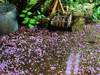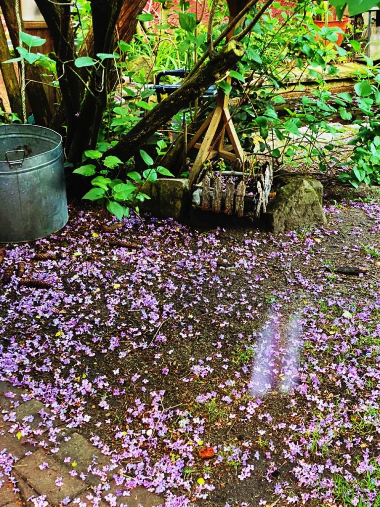Gehölze: Birne, gelbe Pflaume, Aprikose, Sauerkirsche, Brombeeren, Sommerflieder, Gartenhibiskus, Hortensien, Feige, Flieder