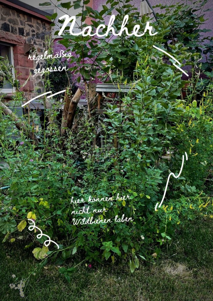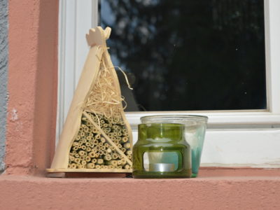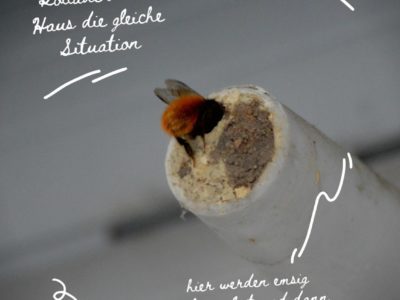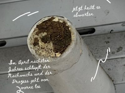 Auf 450 m² mitten in der Stadt befindet sich die Oase, die von uns Menschen, aber auch von vielen Tieren sehr gerne besucht wird. So haben wir neben Besuchern, wie Vögeln, Steinsteinmarder, Eichhörnchen, Fischreihern und Waschbären auch viele Dauergäste, wie unseren Igel, Hummeln, Hornissen und eben auch Wildbienen.