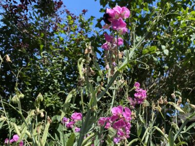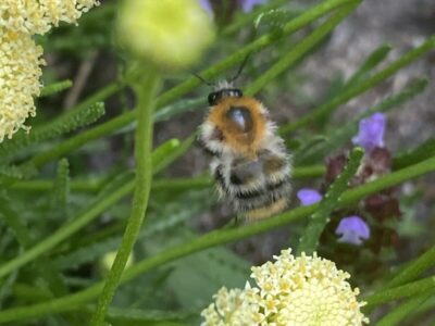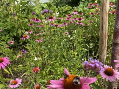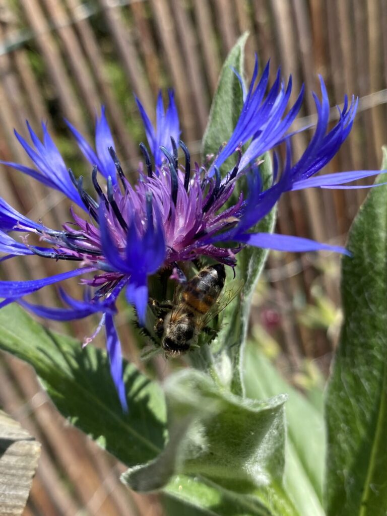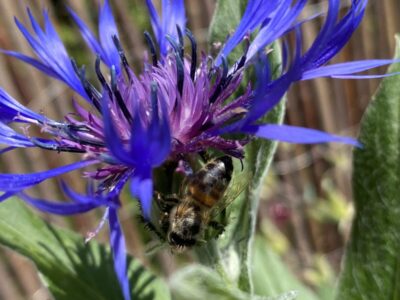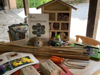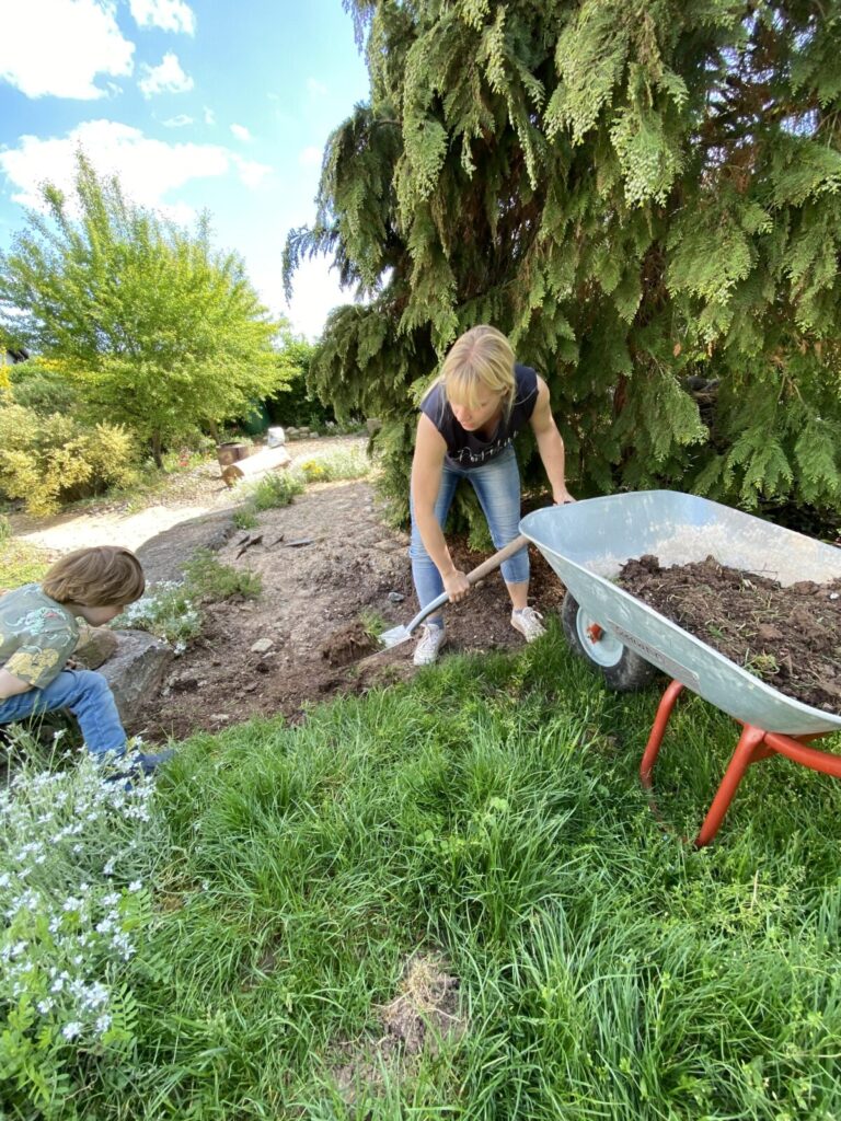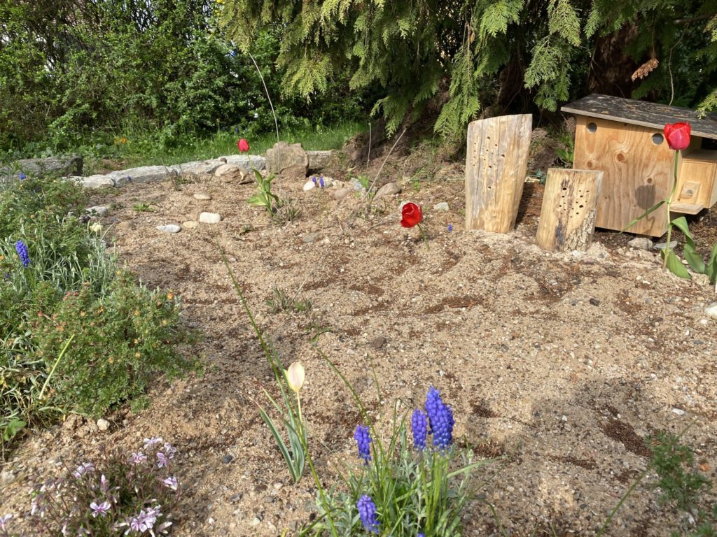 Seit 2015 verwandeln wir unsere Gartenfläche von c.a. 700qm  in einen Naturgarten. Unser Grundstück liegt im Dorf Emskirchen, in der Siedlung Sommerranken. Hier bei uns in Franken haben wir seit mehreren Jahren extrem trockene und heiße Sommer, einerseits eine Herausforderung, andererseits ist unser Naturgarten inzwischen ganz gut auf unsere Klimaverhältnisse angepasst. Wir legen besonderen Wert auf einheimische Pflanzen, die Trockenheit vertragen und gleichzeitig wertvoll für Bienen, Hummeln und andere Tiere sind. Unsere beiden Kinder sind mit uns in dieses Langzeit bzw.“Lebensprojekt“ hineingewachsen und helfen jetzt im Alter von 4 und 6 Jahren auch schon kräftig mit. Gemeinsam entdecken wir die zahlreichen Bienenarten, beobachten die interessanten Abwehrmanöver bei den besten Brutplätzen am Bienenhotel oder stellen fest, welche Pflanze von den meisten Tieren angeflogen wird.