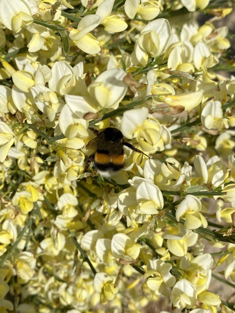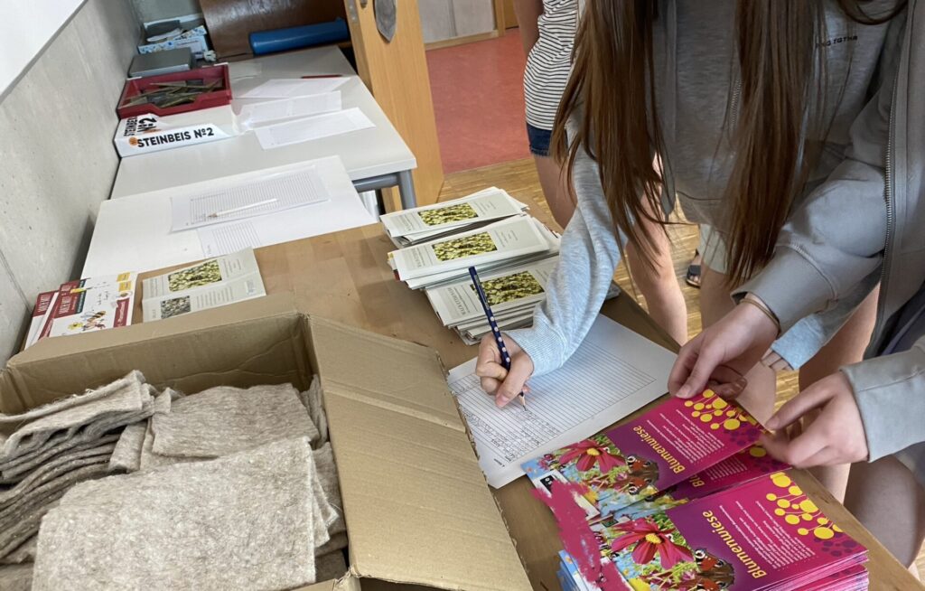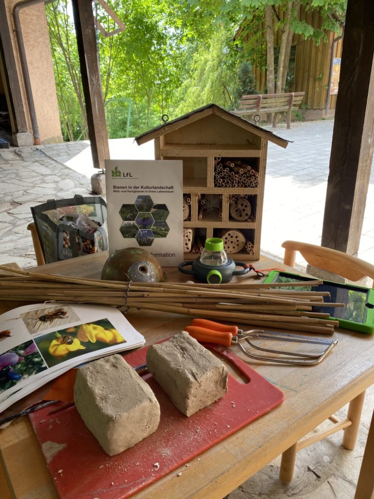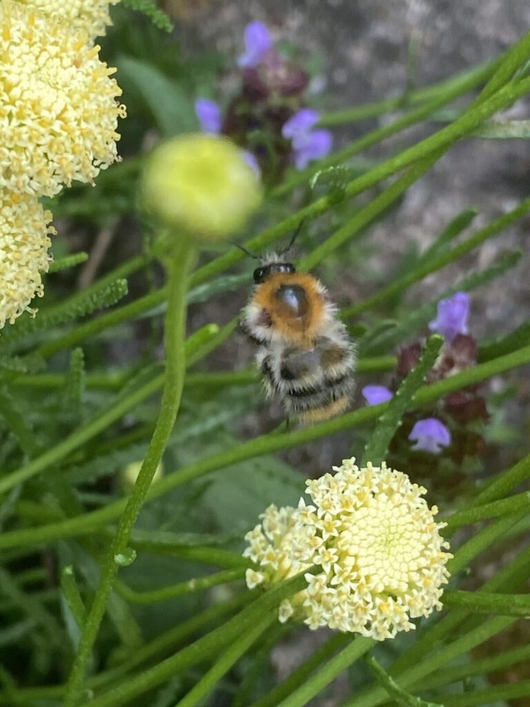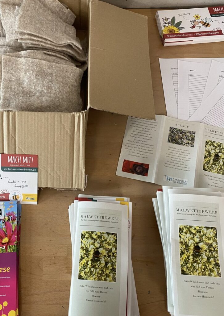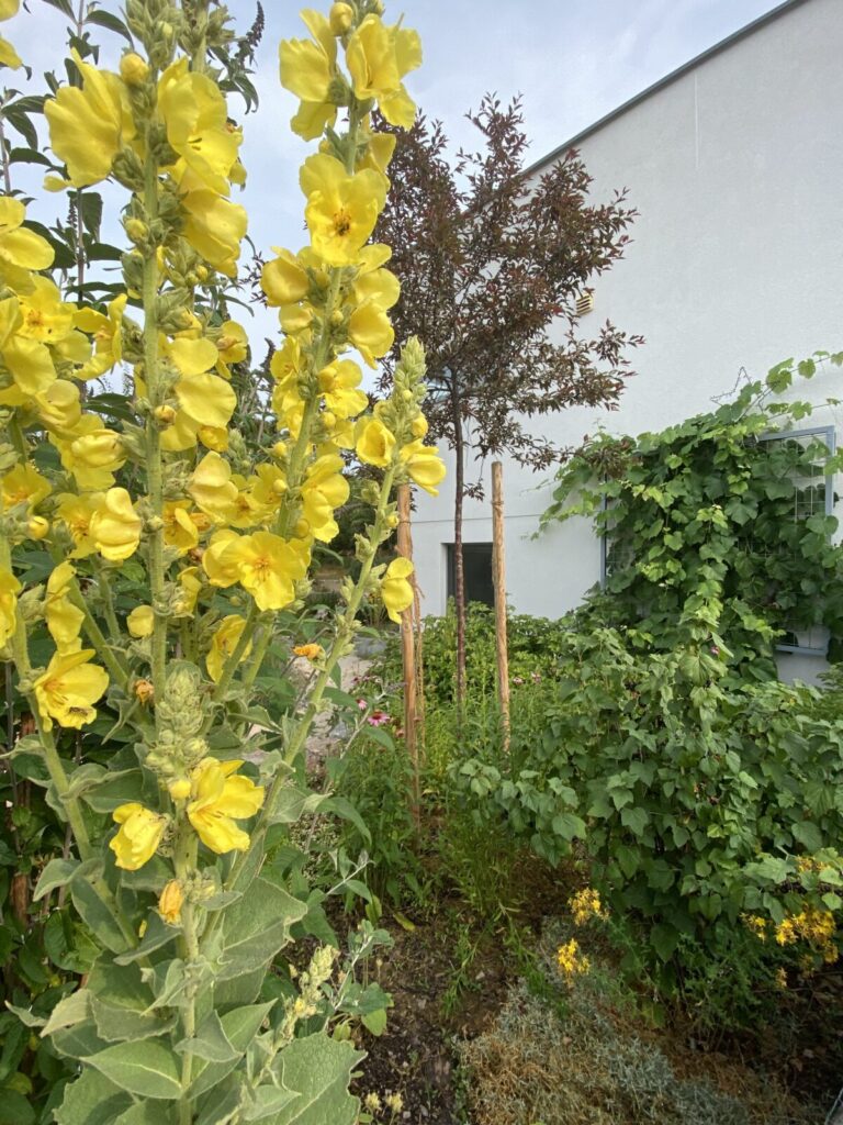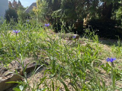 In diesem Jahr soll ein Stück der Rasenfläche in eine Wildblumenwiese verwandelt werden, um das Nahrungsangebot für die Wildbienen zu optimieren. Unser Motto lautet:gepflegte Natürlichkeit anstatt Rollrasen!