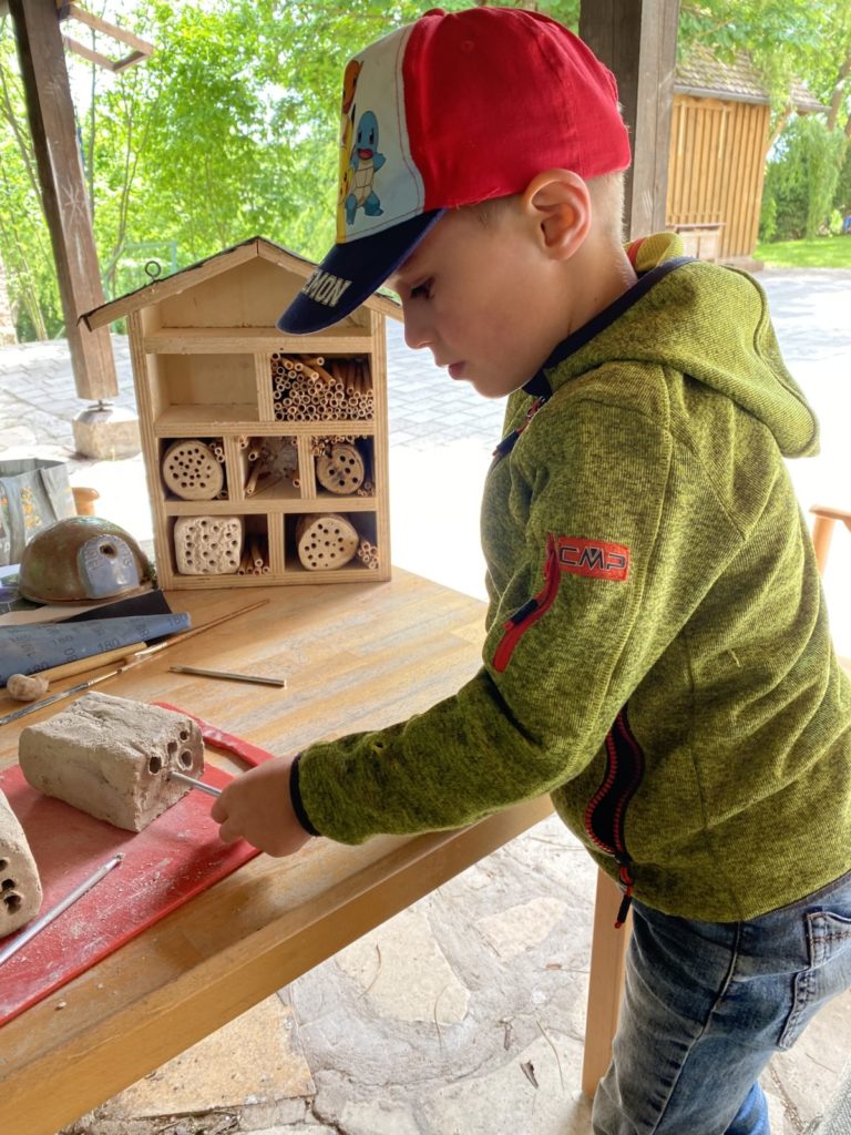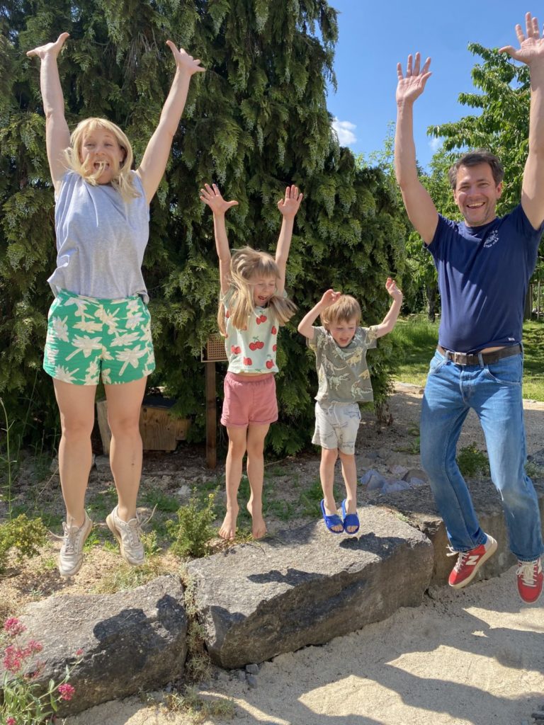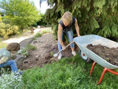 Wir sind eine vierköpfige Familie. Ich, Mama Lilli mache die meiste Arbeit. Ich zeichne die Pläne, besorge die Pflanzen, bestell Baumaterial, Pflanze und pflege den Garten. Mein Mann macht die ganz schweren Arbeiten (Steine schleppen usw. und hilft mir wann immer er kann. Die Kinder helfen mit, auch wenn es manchmal nur Regenwürmer retten ist. Für die Natur, besonders für die Tiere im Garten interessieren sich meine Kinder sehr, das sind eben unsere „Haustiere“. Als Kunstlehrerin versuche ich in der Schule, im Kindergarten und im Hort meine Begeisterung für die Wildbienen weiterzugeben. Auf meiner Seite auf Instagram bekommt man auch einen Einblick in meine Wildbienen- und Gartenprojekte.