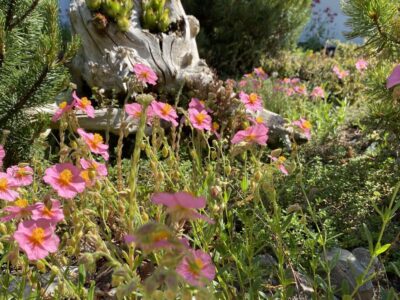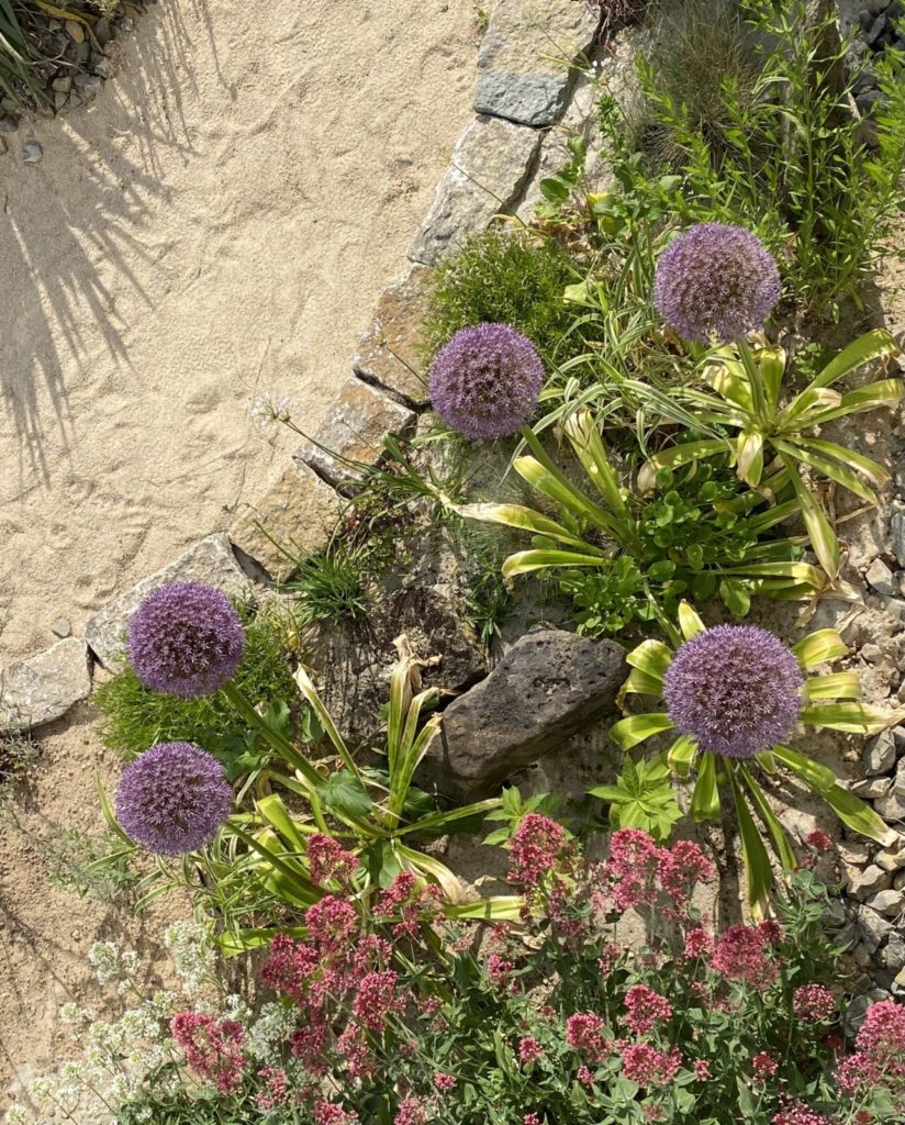 Fettblatt-Arten, Hauswurz-Arten, Steinkraut, Sonnenröschen, Moos-Steinbrech, Gänsekresse, Grasnelke, Schleifenblume, Mauerpfeffer, Sedum-Arten, Wollziest, Phlox, Schleierkraut, blauer Lein, gelber Alpenmohn, Portulakröschen, Blaukissen, Heidenelke, Zwergwacholder, Zwerg Silberraute, Bergminze, Schatten-Steinbrech, Veilchenblütiger Phlox, Steppensalbei,