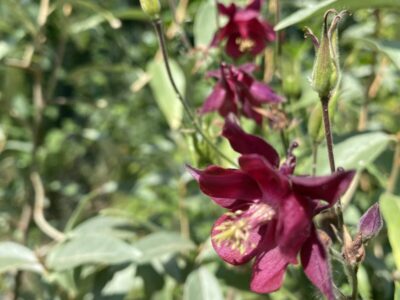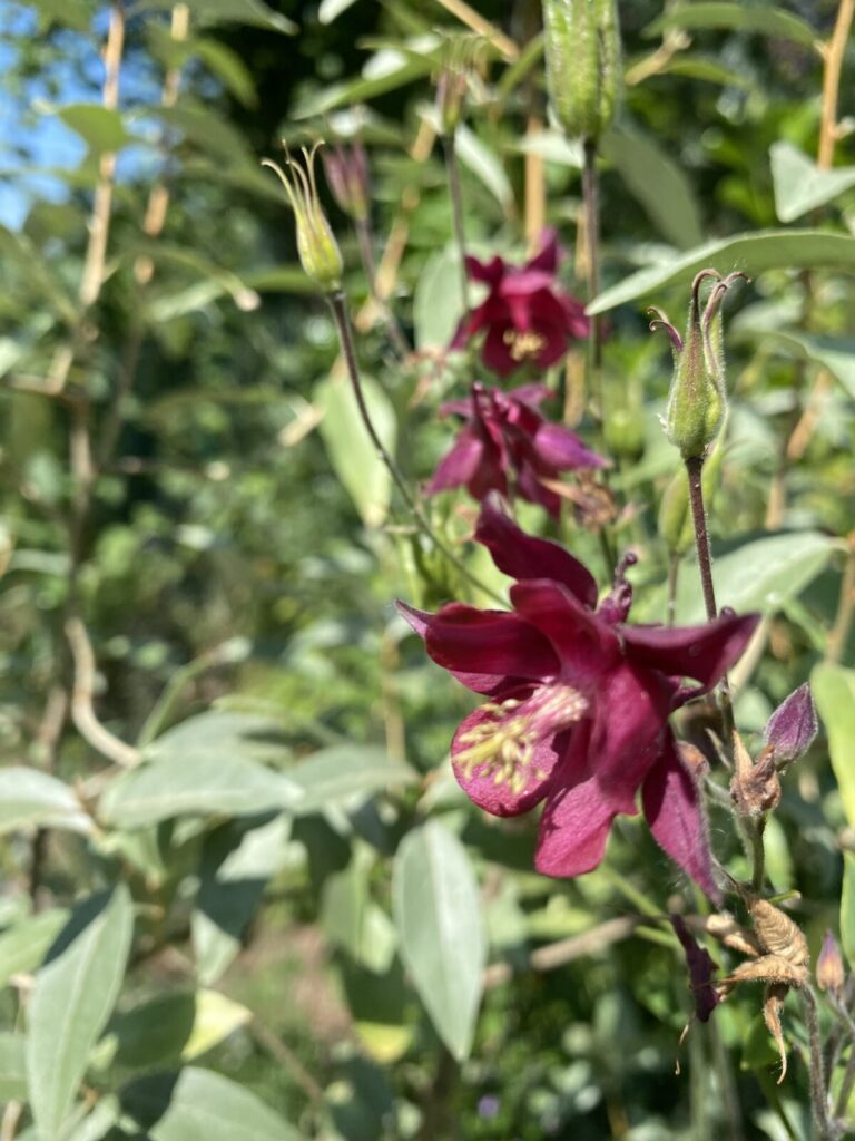 Herbstanemone, Sonnenhut, Gelenkblume, diverse Christrosen, Pfingstrose, Prachtscharte, Königskerze, Fetthenne, Eisenkraut, Blütendost, Nachtkerze, Blauraute, Frauenmantel, Taubnessel, Storchenschnabel, Färber-Hundskamille, Lungenkraut, Schaumblüte, Clematis, Küchenschelle,  Purpurglöckchen, wilder Rittersporn, Akelei, Lupine, Iris, Taglilien, Hostas, Farn, Bergenie, Steinsame, Prachtkerze, großer Wiesenknopf, Wolfsmilch, wilder Wein, Wermuth, diverse Duftnesseln, Lavendel, Hechtrosen, Herbstaster, Wicken, Hornkraut, Flockenblume, Mannstreu, Goldrute, Silberkerze, Tüpfel-Harteu, Rote Lichtnelke, Kartäusernelke, Weiße Lichtnelke, Bartblume, Geißblatt, Riesenmohn, Spornblume, Goldfelberich, Ysop, Wiesenglockenblume, Platterbse, Steppenkerze, echtes Eisenkraut, Stachelnüsschen, Goldnessel, Beifuß, Wolfsmilchgewächse, Fenchel, Leberblümchen,