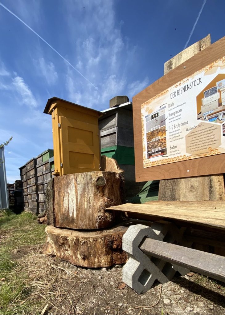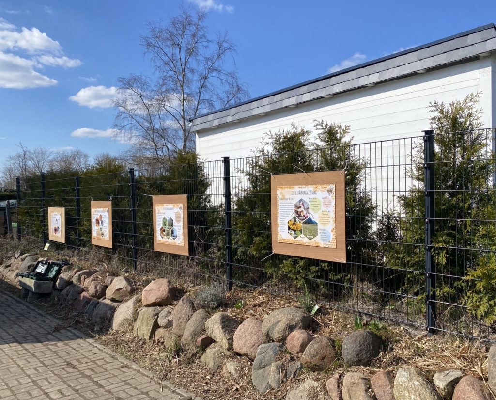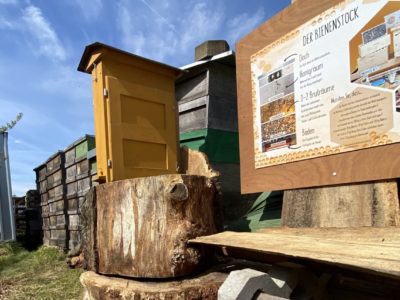 Außerdem haben wir noch wunderschöne Lehrtafeln über Bienen aufgestellt, Bienenhotels und Nistplätze und einen kleinen Schaukasten an dem wir zukünftig Kindern und auch älteren Besuchern die Bienen näher vorstellen möchten. Neben Bienen fühlen sich auch Käfern, Hummeln, Schnecken, Schmetterlinge, Spinnen und co sehr wohl bei uns, da wir viele natürliche Nistplätze teils neu geschaffen, teilweise auch einfach stehen gelassen haben.