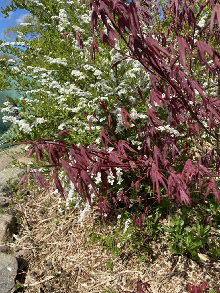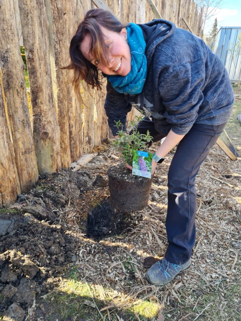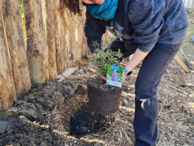 Damit konnten wir inzwischen 7 große Bienenfreundliche Bäume auf einer Streuobstwiese in die Erde bringen und im vorderen, öffentlich begehbaren Gartenteil diverse heimische Stauden, Gehölze, Kräuter und Wildblumen ansiedeln. Unter anderem haben wir einen Faulbaum, Lavendel und Flieder angepflanzt und noch vieles mehr.